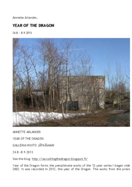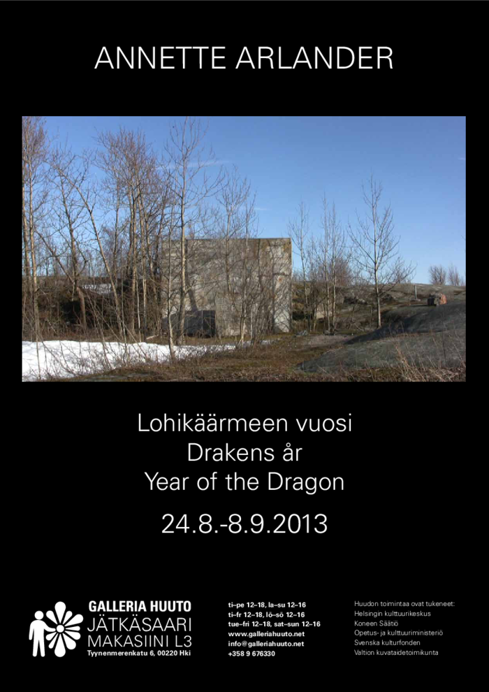 During the year of the Dragon (2012), I called the dragon more or less once a week from the roof of a bunker, which was used to defuse mines after World War II. I did this by ringing a small ceramic bell that I bought as a souvenir from a temple in Kyoto. I recorded the performances on video and I also documented the project in a blog known as Calling the Dragon (http://aa-callingthedragon.blogspot.fi) that I wrote in three languages.