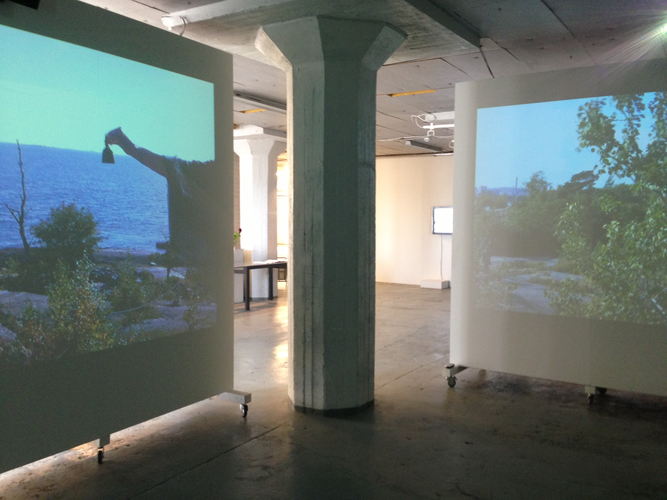 Calling the Dragon – four-channel video installation. The video was recorded in four directors while standing on the roof of the bunker, which is located on the southern tip of Harakka Island. I did this approximately once a week between February 4, 2012 and February 3, 2013, a total of 40 times.