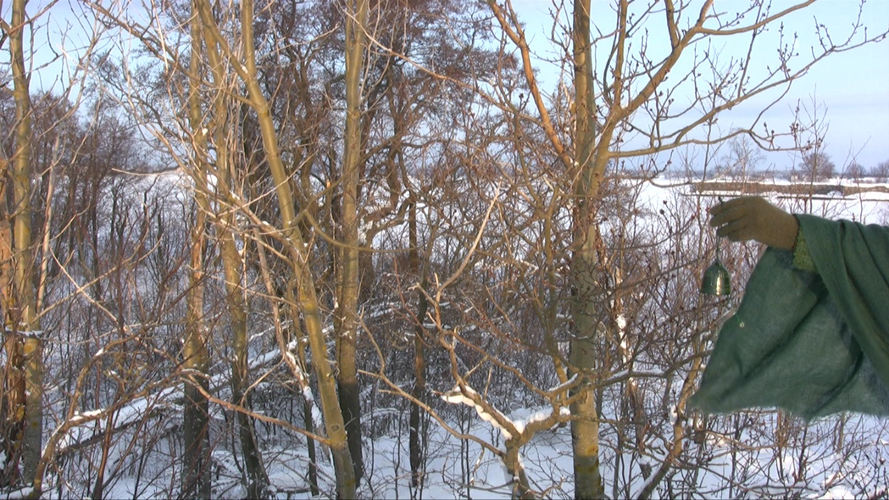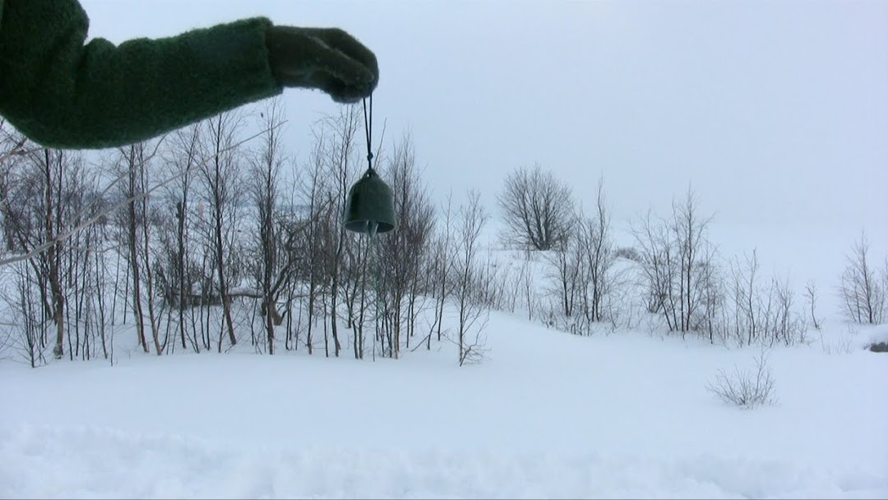 Wrapped in a green scarf, I call the dragon by ringing a small ceramic bell on the roof of the bunker on Harakka, in part 1 facing north, in part 2 facing east, in part 3 facing south and in part 4 facing west. The round of the year is repeated twice, once from the left and once from the right.