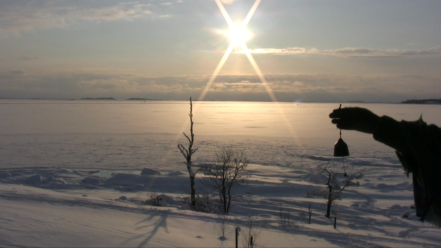 Year of the Dragon forms the penultimate works of the 12-year series I began videoing on Harakka Island in 2002. It was recorded in 2012, the year of the Dragon. The works from the previous year, the year of the Rabbit, were displayed at Gallery Jangva in January 2013. Each year I have found a new feature in the environment and a new kind of relationship between the human body and the place. This year the sound, the barely audible tinkle of the small bell, is essential. My way of working is based on the traditions of performance art, video art and environmental art, moving in the borderland between them.