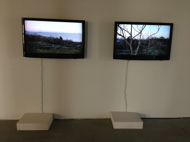The video was recorded on Harakka Island from the panorama hill towards the bunker and from the roof of the bunker towards the panorama hill between February 4, 2012 and February 3, 2013.