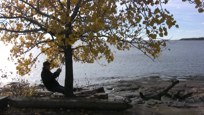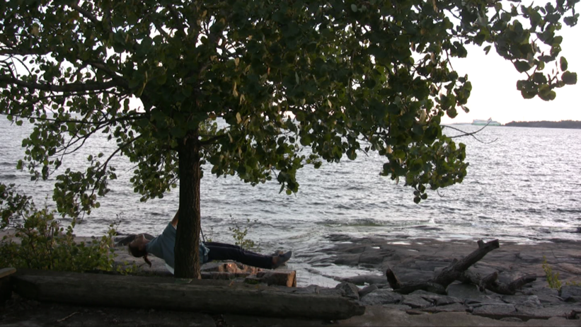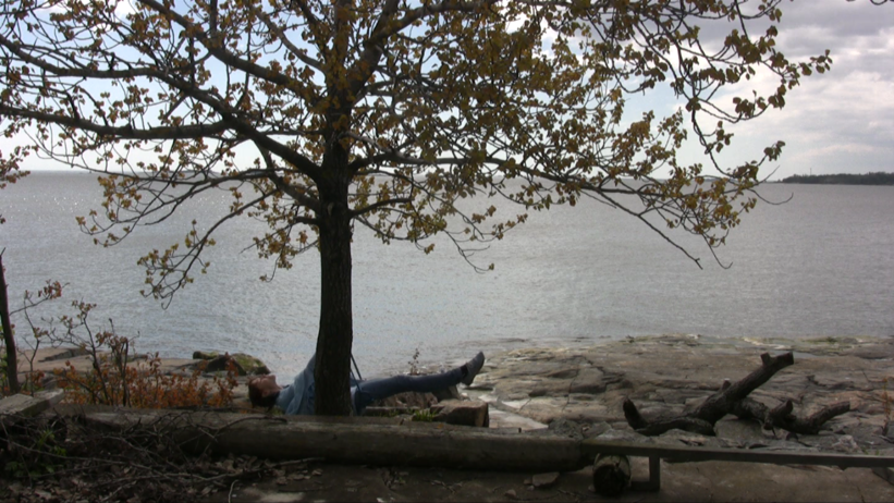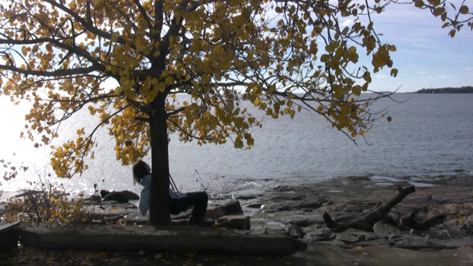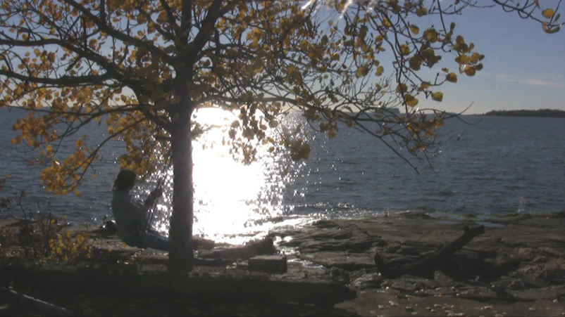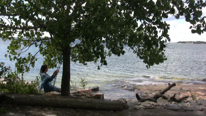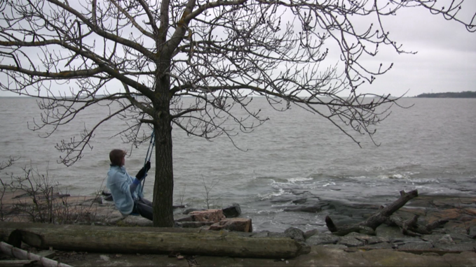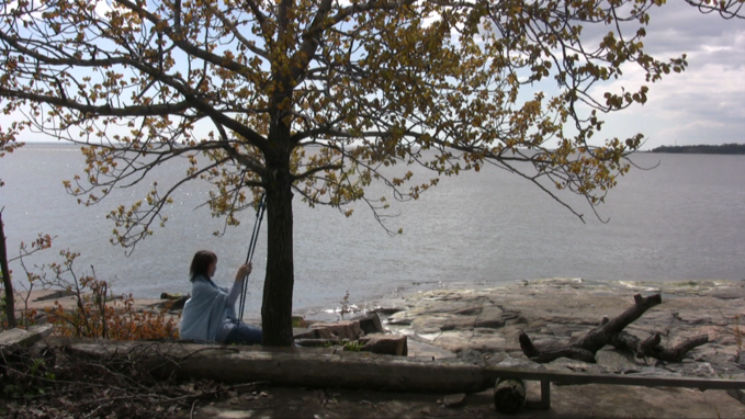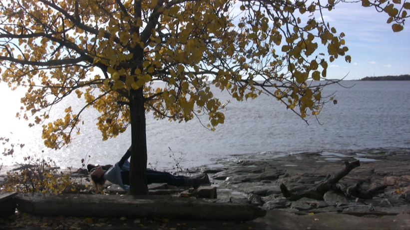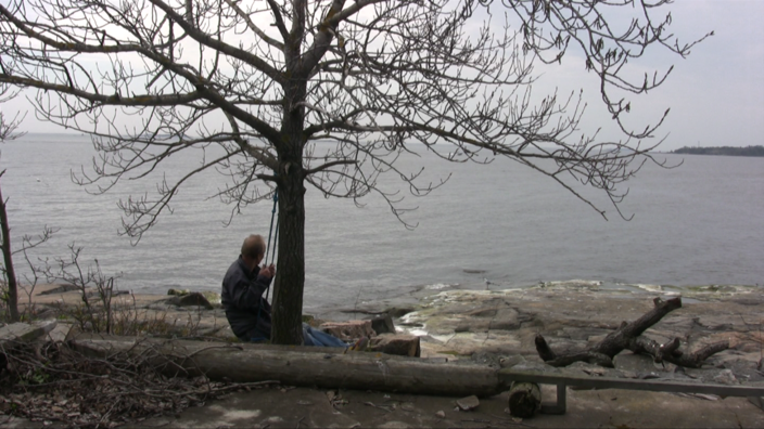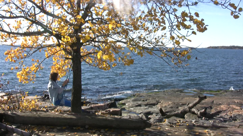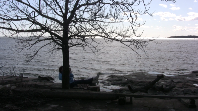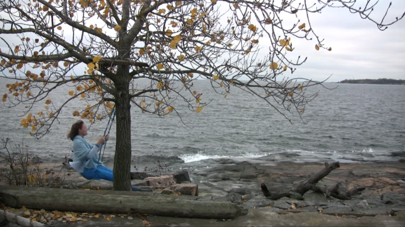 Wrapped in a pale blue scarf I am swinging in a swing attached to an aspen on the western shore of Harakka Island for a day and a night with three-hour intervals between 13 October 2013 and 14 October 2013.