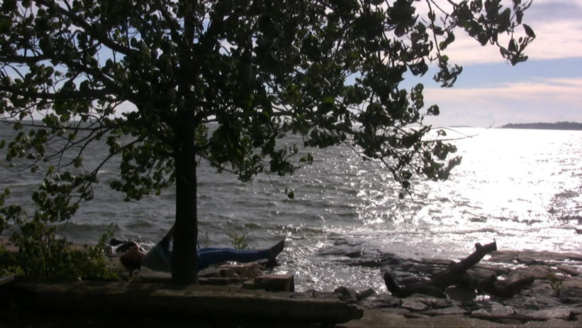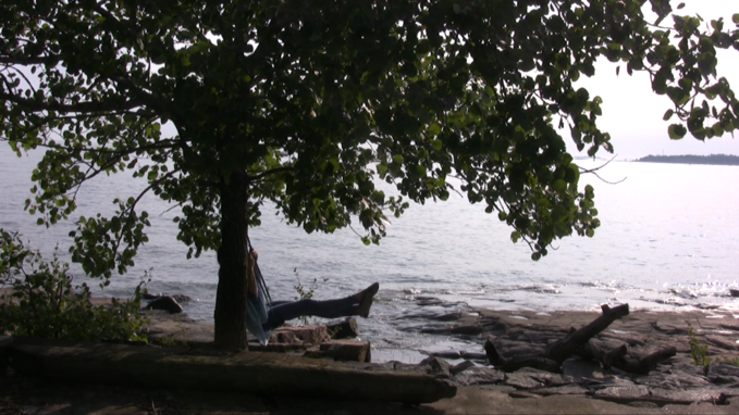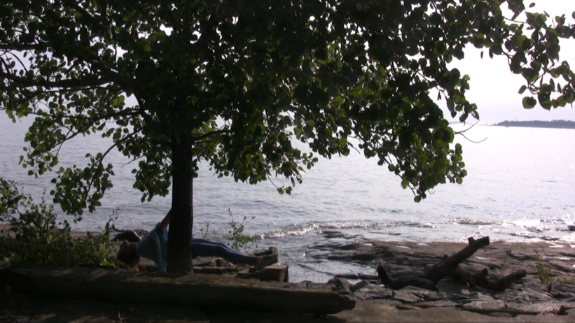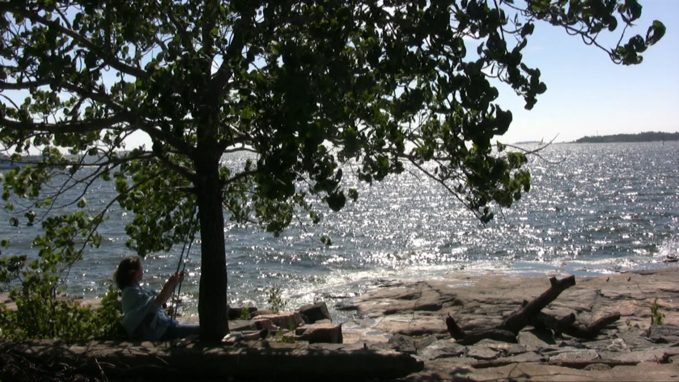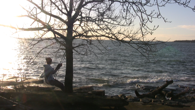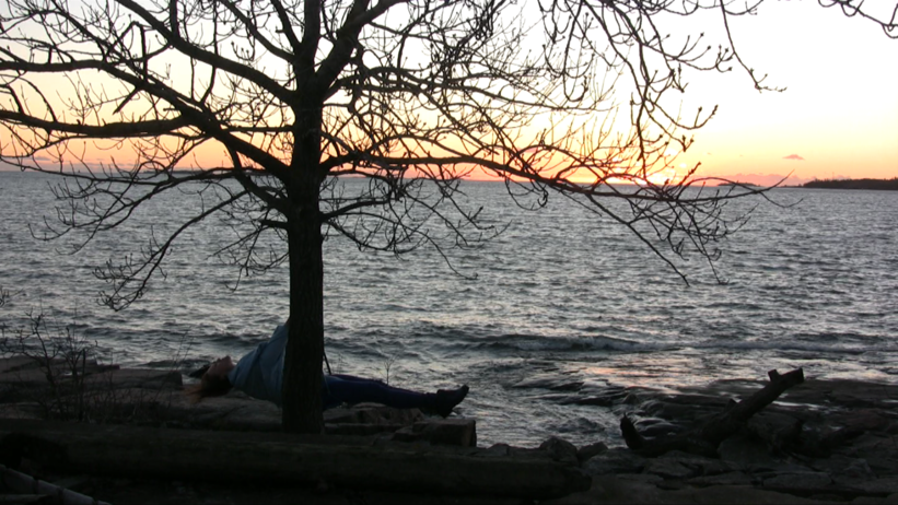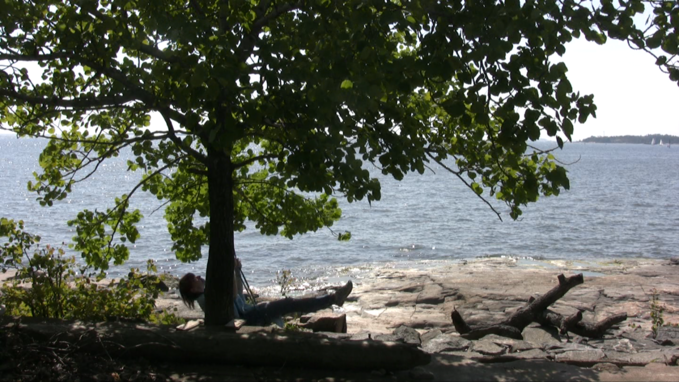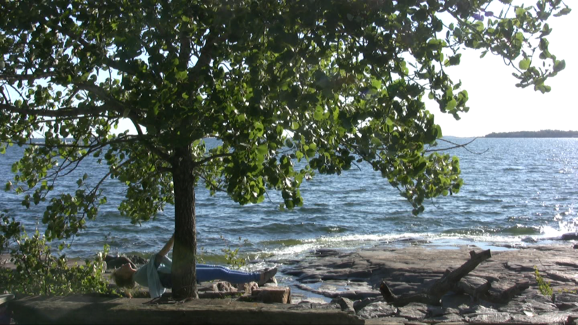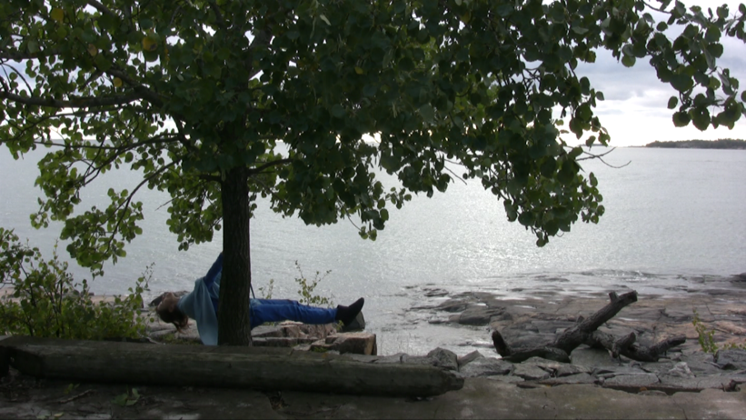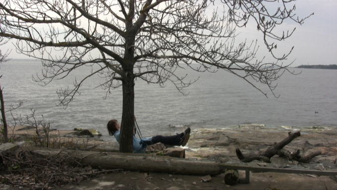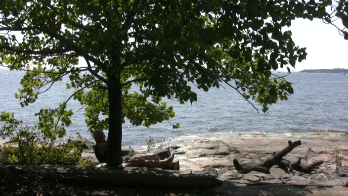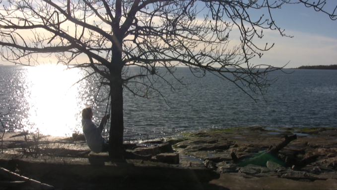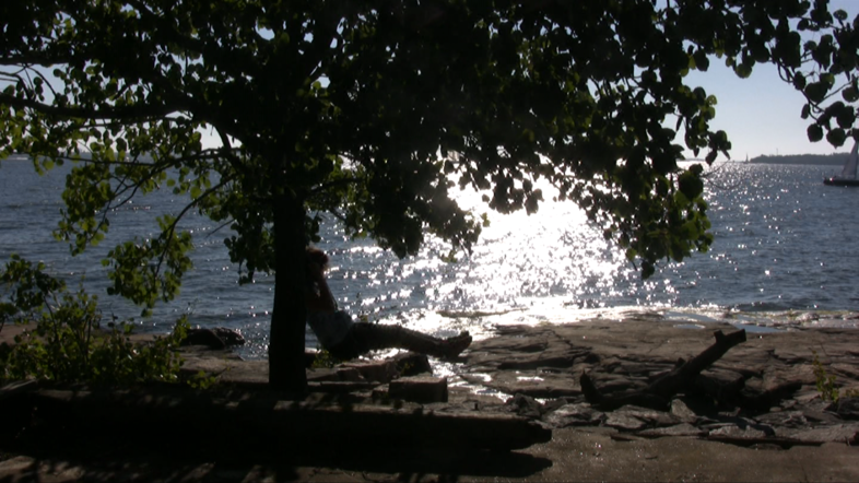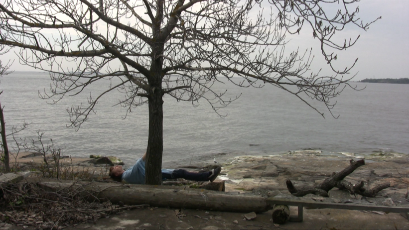 Wrapped in a pale blue scarf I am lying in a swing attached to an aspen on the western shore of Harakka Island approximately once a week during the year of the snake between 10 February 2013 and 28 January 2014.