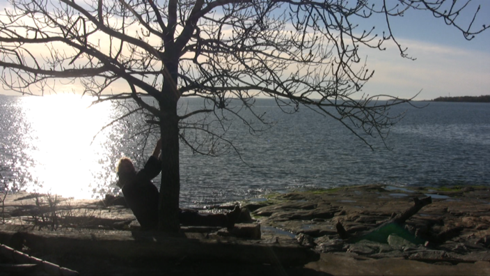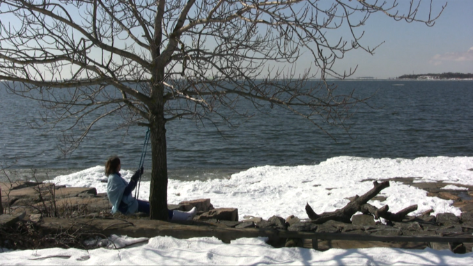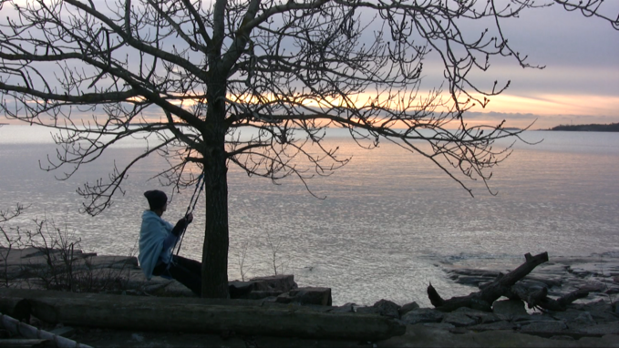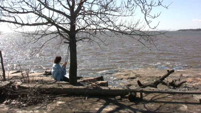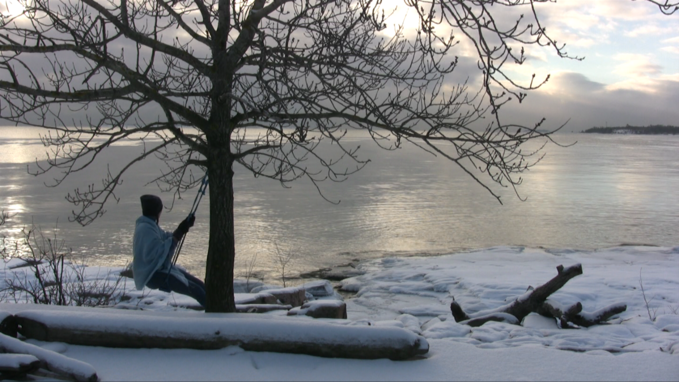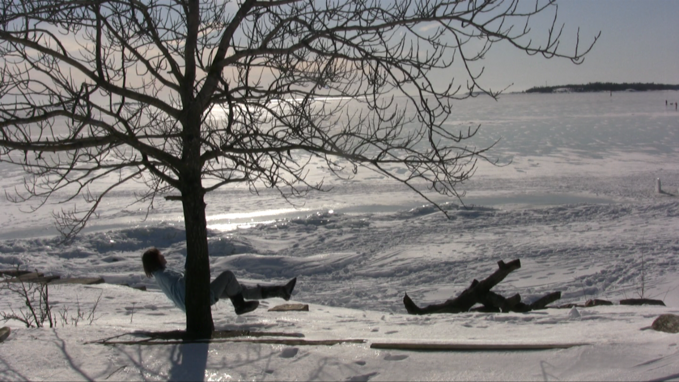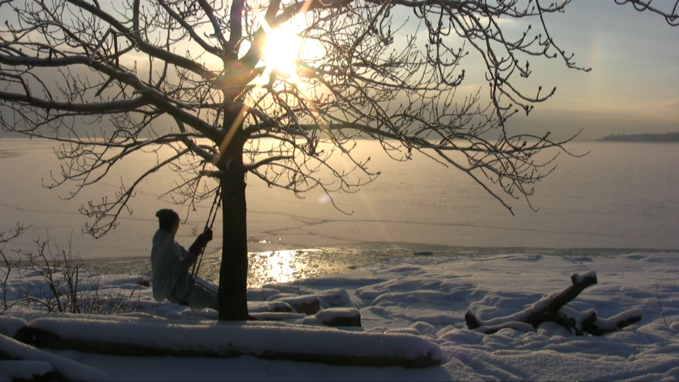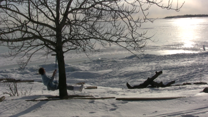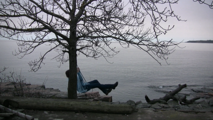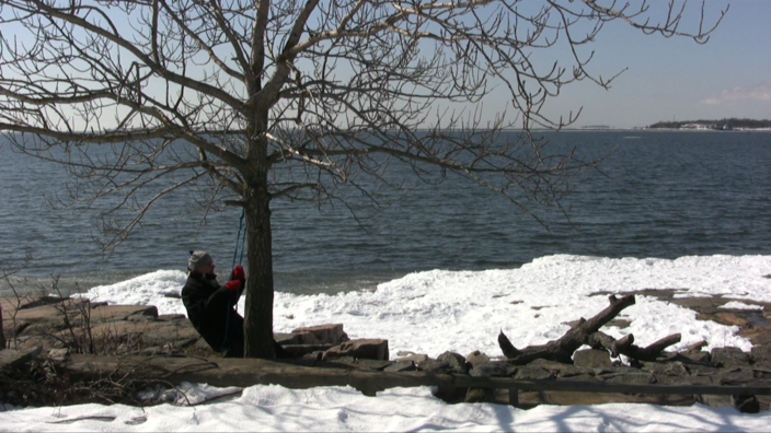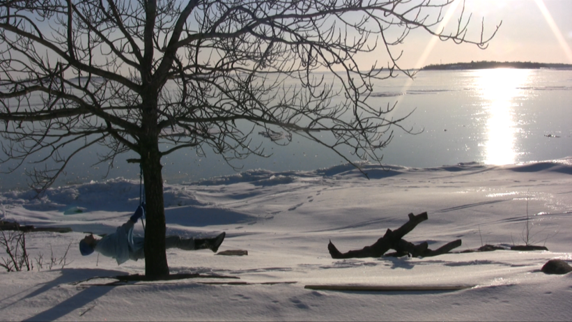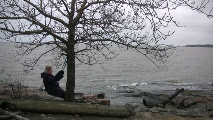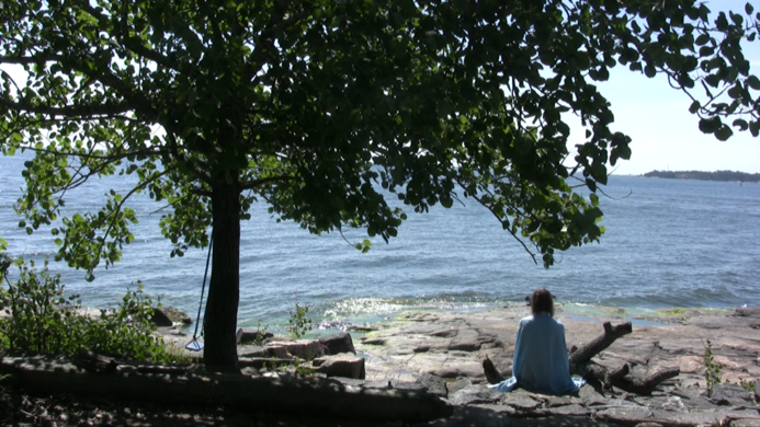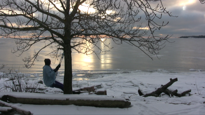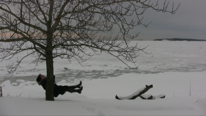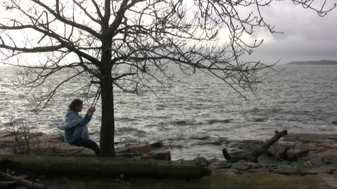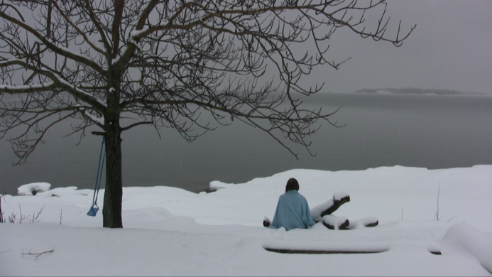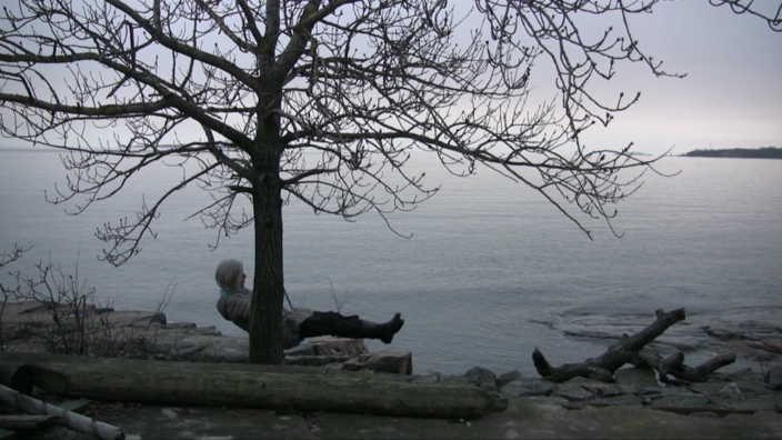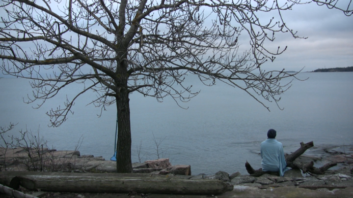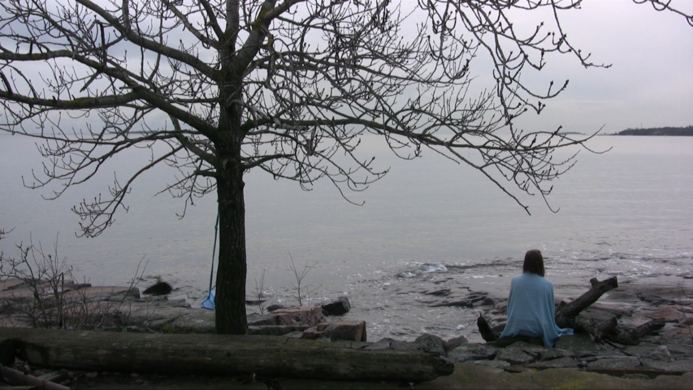 3. Year of the Snake – By the Swing (short). Wrapped in a pale blue scarf I am sitting next to a swing attached to an aspen on the western shore of Harakka Island approximately once a week during the year of the snake between 10 February 2013 and 28 January 2014.