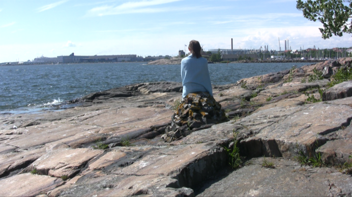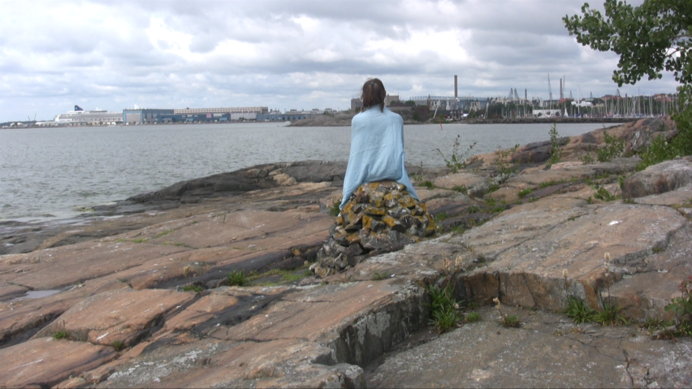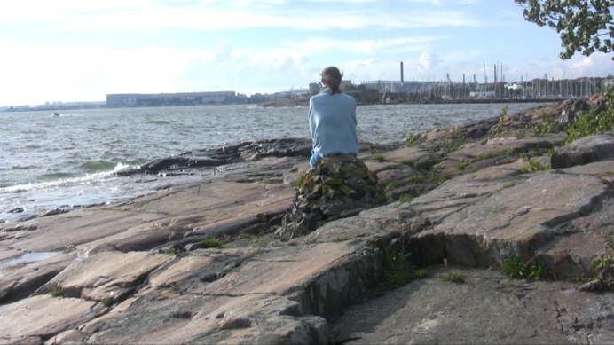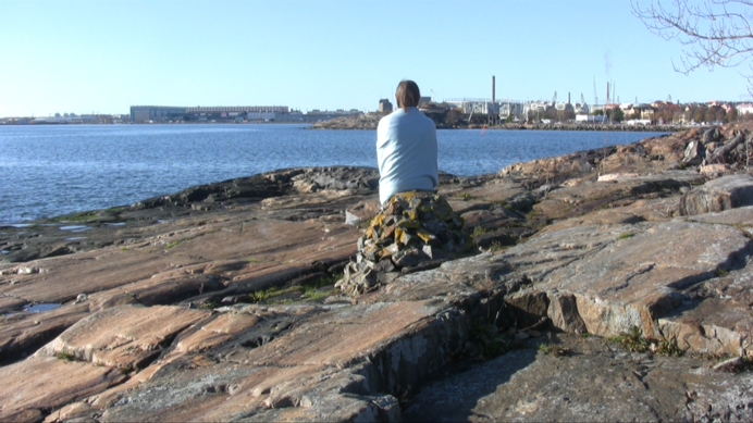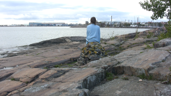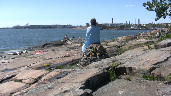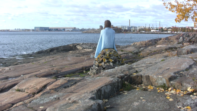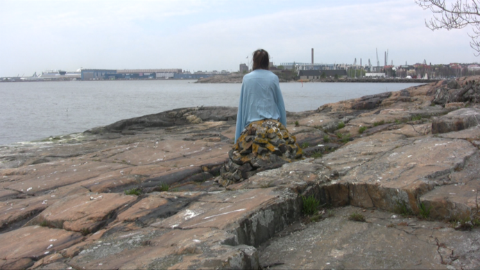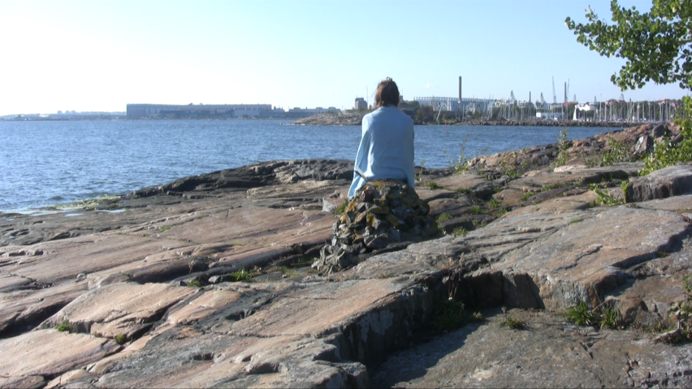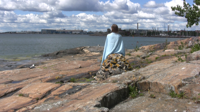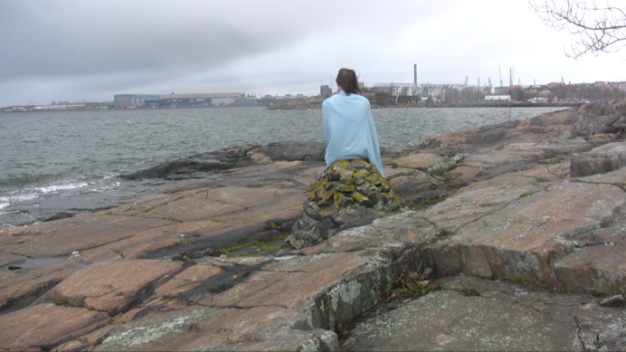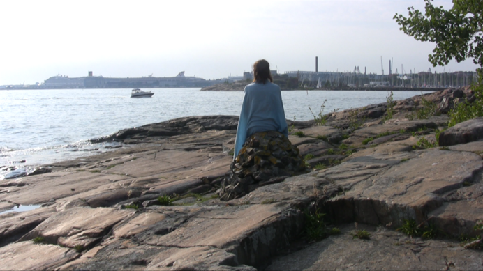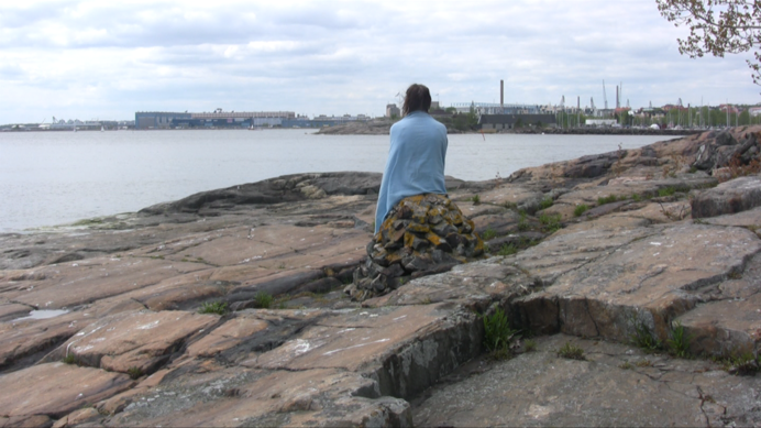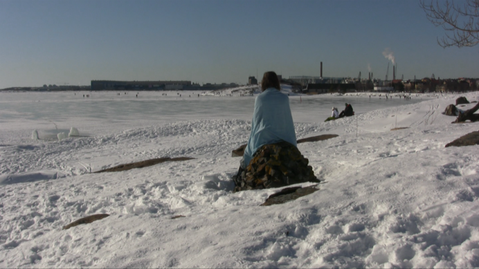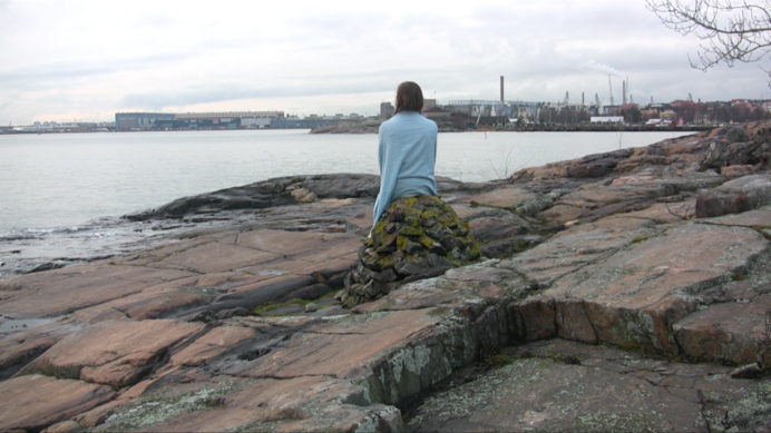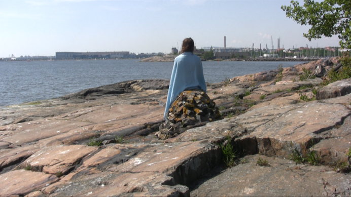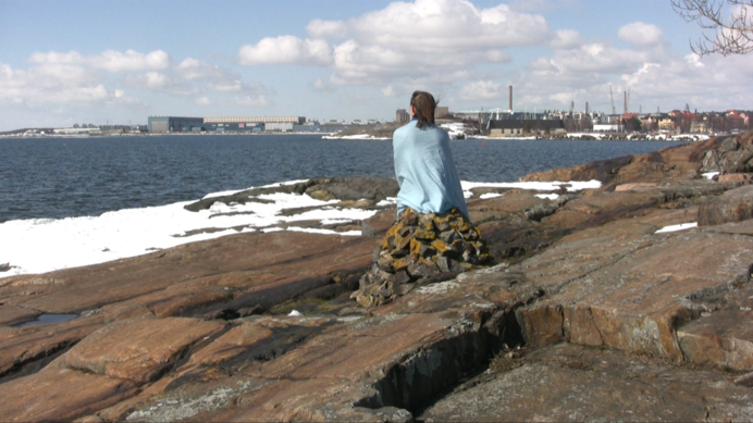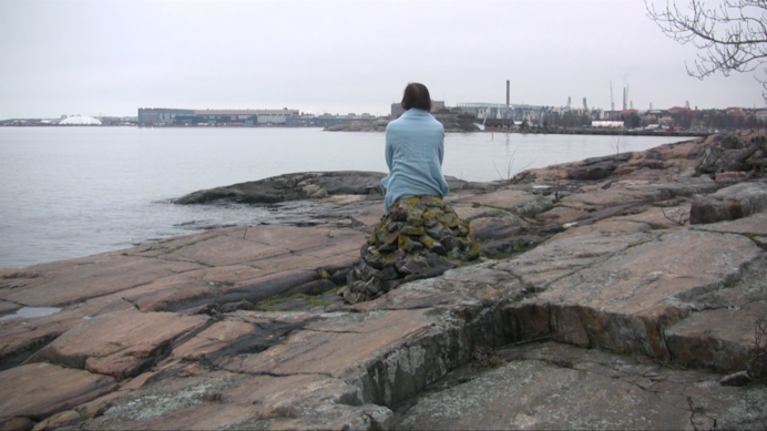4. Year of the Snake – Watching the Harbour (short). Wrapped in a pale blue scarf I am sitting on a pile of rocks on the western shore of Harakka Island approximately once a week during the year of the snake between 10 February 2013 and 28 January 2014.