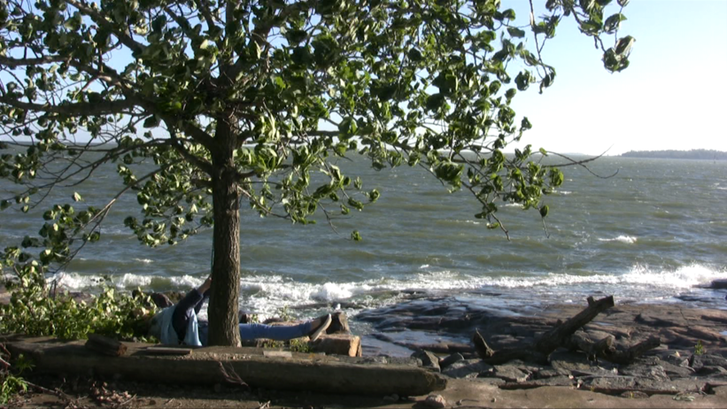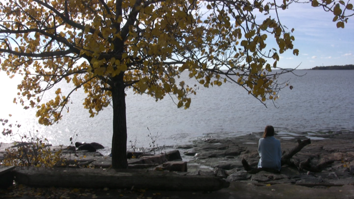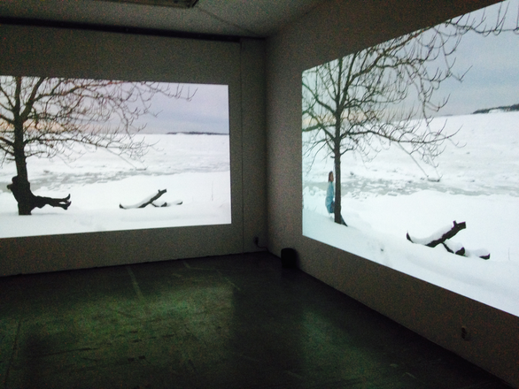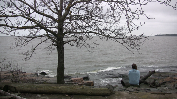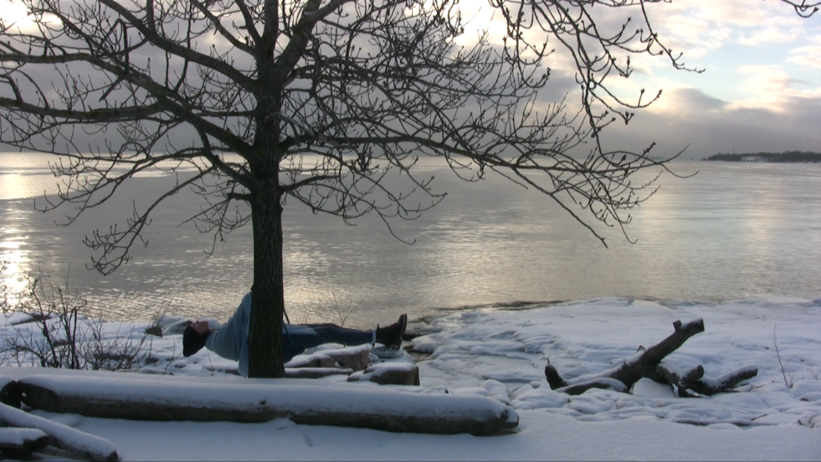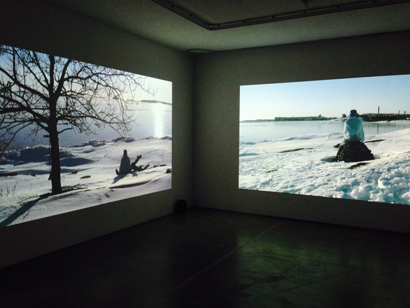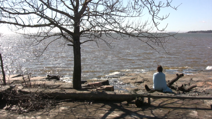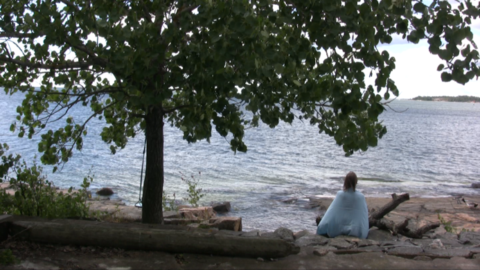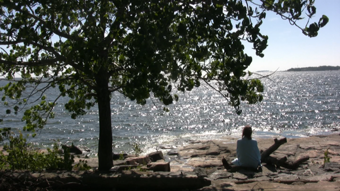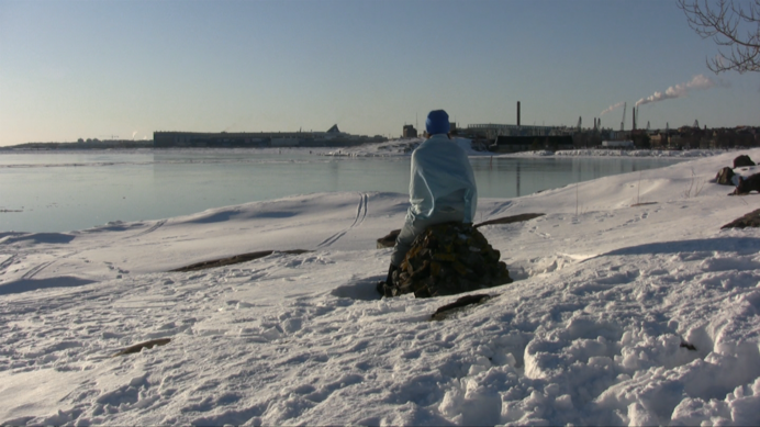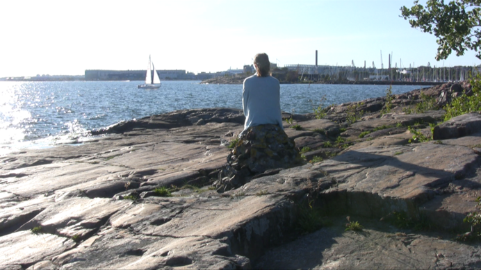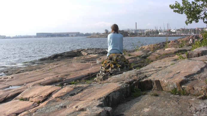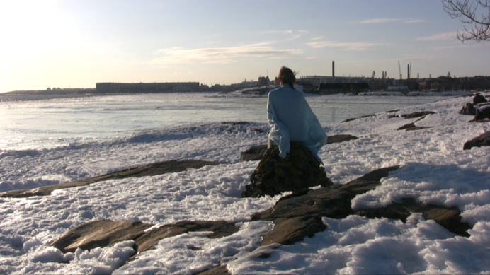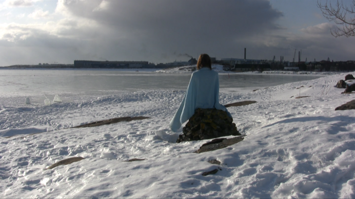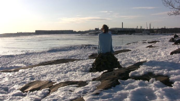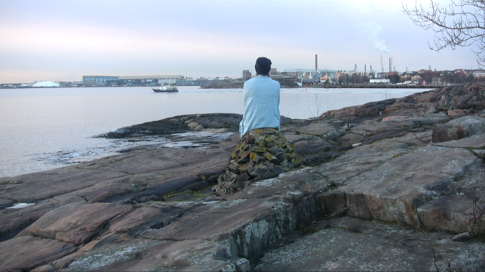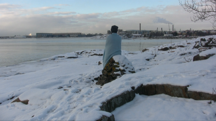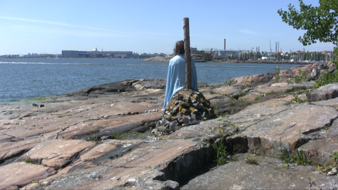 4. Year of the Snake – Watching the Harbour (short). Wrapped in a pale blue scarf I am sitting on a pile of rocks on the western shore of Harakka Island approximately once a week during the year of the snake between 10 February 2013 and 28 January 2014.