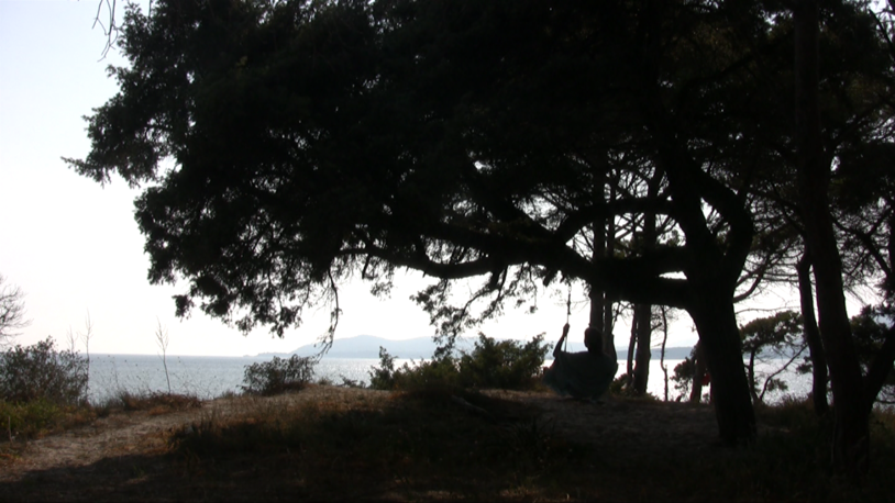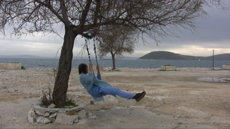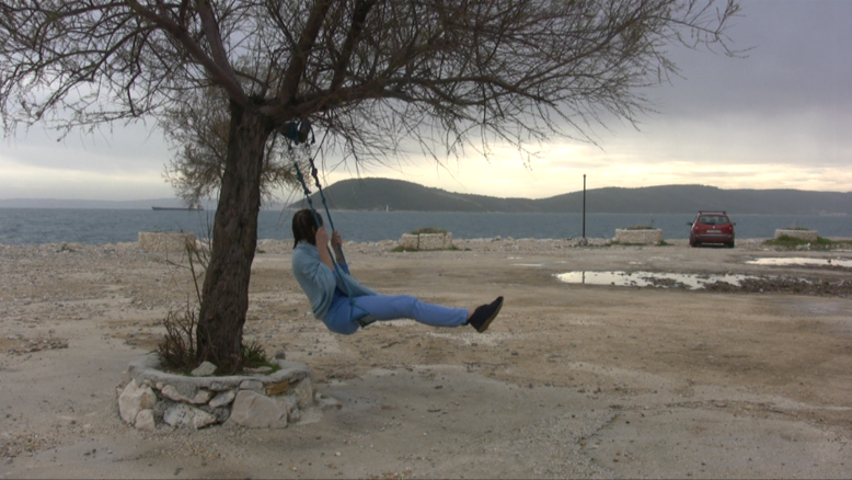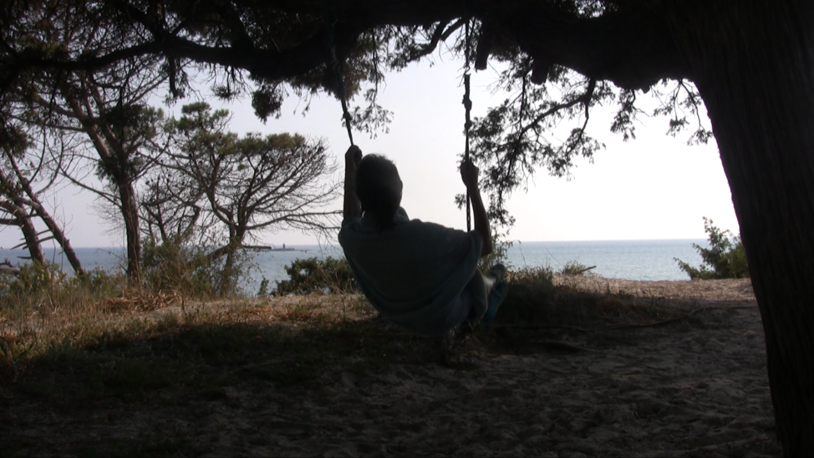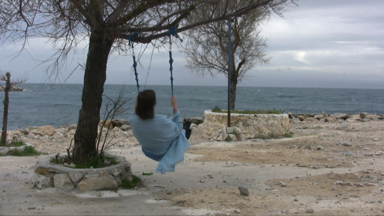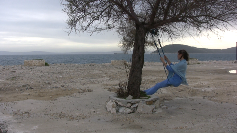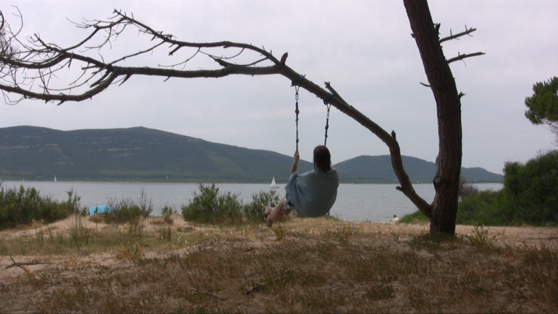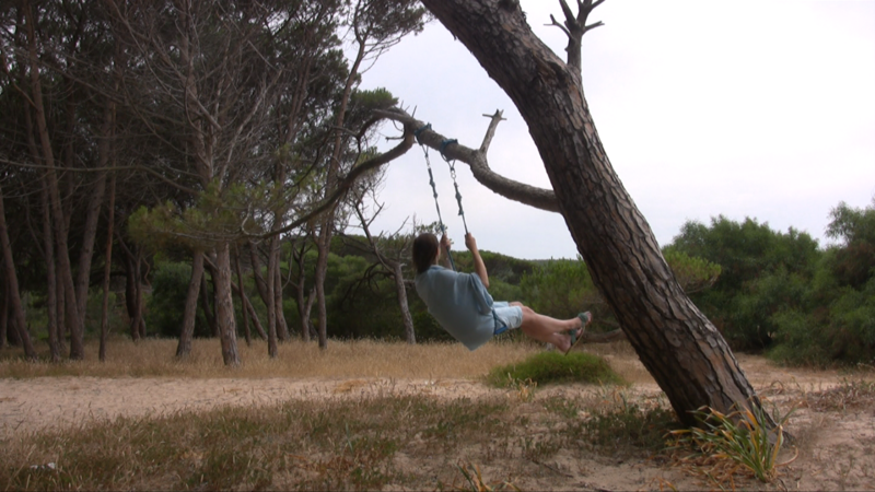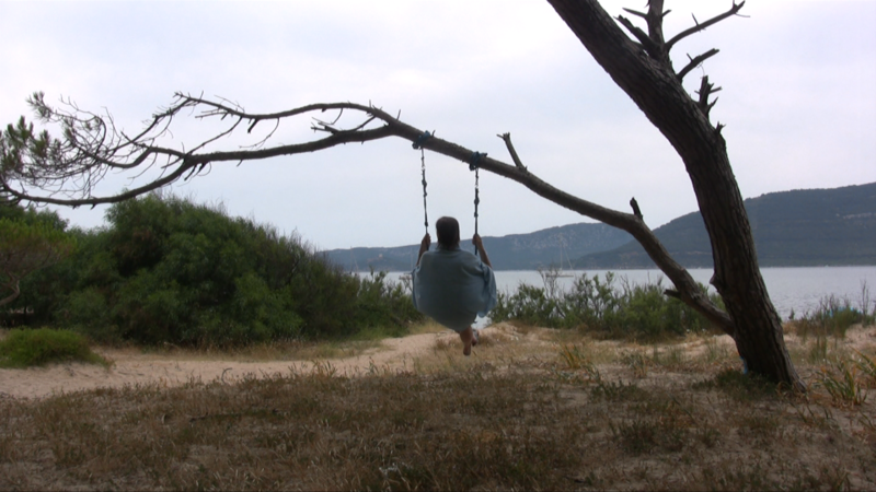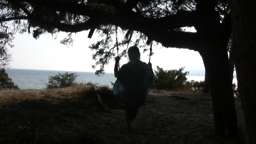 Wrapped in a pale blue scarf I am swinging in a swing attached to various trees on the coast of Croatia and Sardinia on some summer days in 2013.