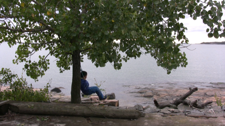 Wrapped in a pale blue scarf I am swinging in a swing attached to an aspen on the western shore of Harakka Island approximately once a week during the year of the snake between 10 February 2013 and 28 January 2014.