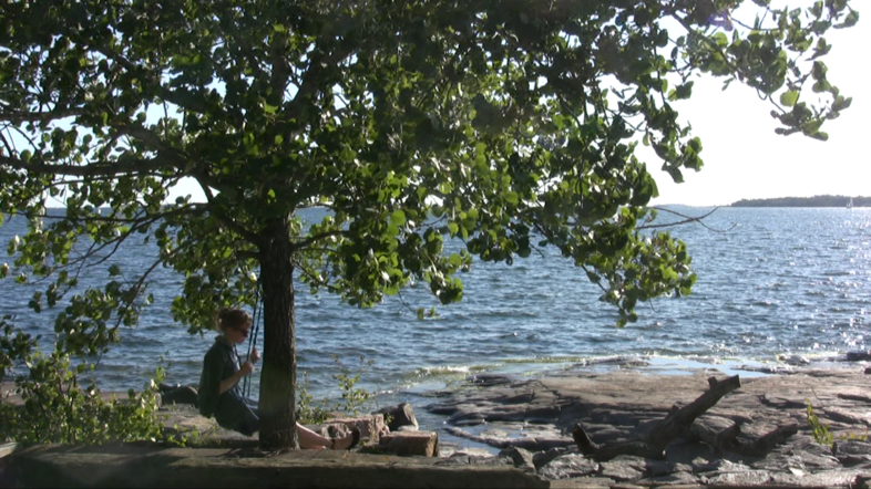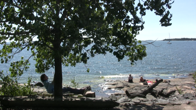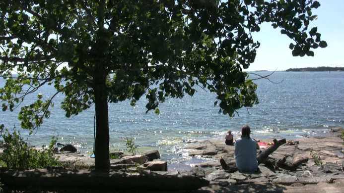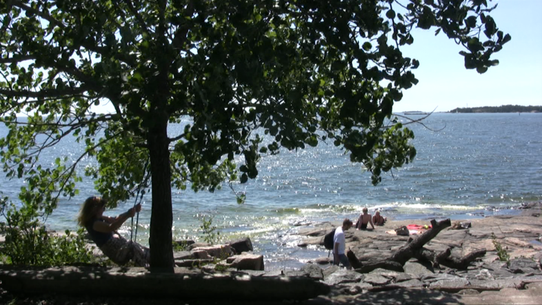 People visiting or working on Harakka Island sit for a while in a swing attached to an aspen on the western shore of the island approximately once a week during the year of the snake between 10 February 2013 and 28 January 2014.