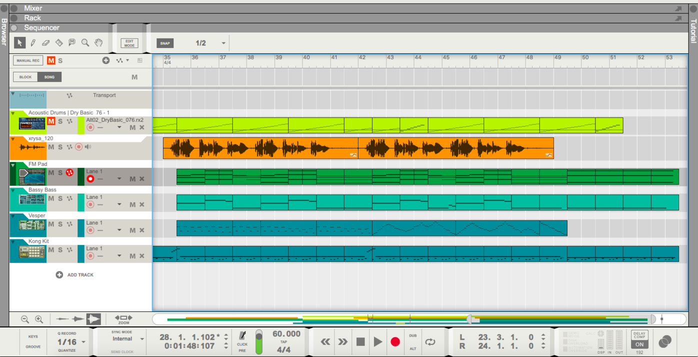 Another example of how the result is influenced by opening the process and including the input of the musicians playing, is the different versions of the song “Down and Over”. Having a more electronic sound in the first recording, the certain character of this demo is reflecting the identity of the duo who developed the song. When later the duo is accompanied by bass and calabash, performing in a more acoustic setting, the character of the song is shifted. Even though the core musical elements remain, the overall feeling of the song changes as the group interacts and perceives the song in a more introvert way. Later on, when the same song is played in my bachelor concert, the texture of the sounds changed as the instrumentation was different. An interesting fact is that the majority of the musicians remain the same in these different takes, but the sound and identity of the group is alternating in time influenced by the interaction of the band, but also by the shifting personal focus of interest of each other.