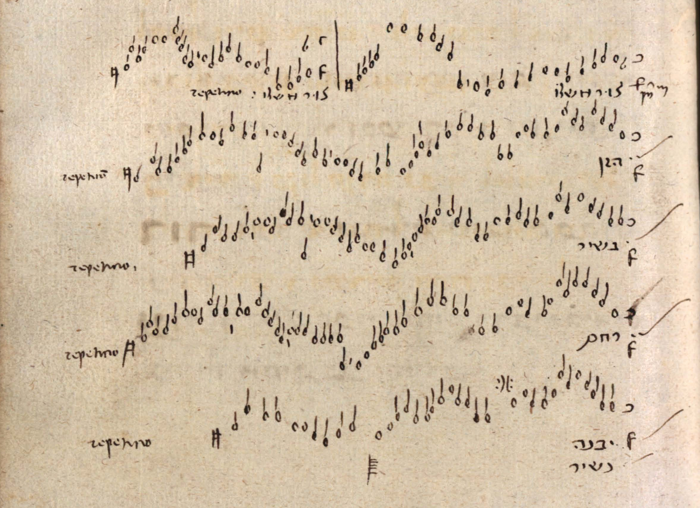 Figure 2: “Tzir Mishelo” (music). München, 4° Cod. ms. 757, fol. 95r, lower page.