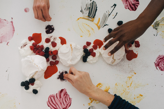 Binnen dit beeldend onderzoek stelde ik mijzelf als voorwaarde om te werken met eten. Allereerst omdat ik hiermee het fysieke lichaam aanspreek. Daarnaast omdat we smaak ervaren door de samenkomst van vijf gewaarwordingen, waarbij we al onze zintuigen tegelijk gebruiken.