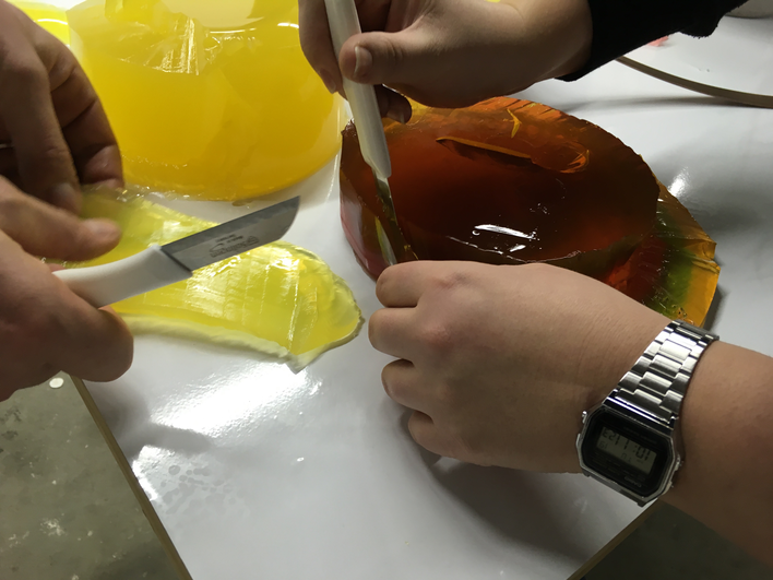De vraagstelling ‘Hoe wordt smaak vormgegeven? Was in deze fase van het onderzoek niet meer relevant. De vraag die ik mijzelf stelde, moest meer aansluiten bij mijn nieuwsgierigheid naar het potentieel dat ik zag van smaak als zintuiglijke, belichaamde-ervaring en de toepassing daarvan binnen een beeldende context. Ik kon mij beter afvragen ‘Op wat voor manieren kan ik een belichaamde ervaring van smaak vormgeven, waarmee ik door kan dringen tot nieuwe artistieke realiteiten?’