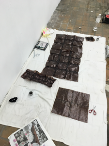 Met het thema ‘voeding’ begon ik in fase één mijn onderwerp te verkennen. Binnen mijn beeldende praktijk startte ik te werken met eetbare materialen en theoretisch verkende ik alles wat met voedsel, eten en kunst te maken had. Terugkijkend was het in deze fase zowel binnen mijn beeldende onderzoek als in de theorie die ik las onduidelijk wat ik nu precies met eten wilde doen, of waar ik naar op zoek was. Uit de hoeveelheid van vormen en betekenissen waarmee, chef-koks, food designers en kunstenaars met voedsel werken, vond ik het lastig om mijn richting te bepalen.