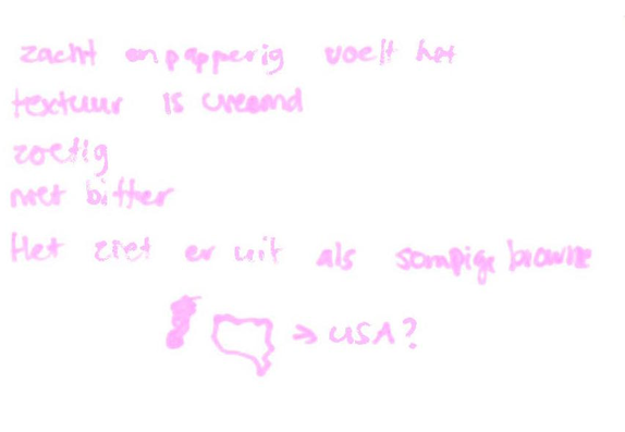 Een volgend belangrijk experiment dat ik in fase 2 uitvoerde was de Smaak Challenge van Férran Adrià. (Marres, Z.d. )Tijdens de ‘opvoering’ van dit experiment. Werd de aandacht van mijn zintuiglijke waarneming gestuurd, met de bijgeleverde instructie. De Challenge leverde niet alleen een zintuiglijke gewaarwording in het hier-en-nu op, maar zette mij aan tot het maken van een beeldende vertaling. Wat ik eerder met mijn tekeningen deed, kreeg na dit experiment veel meer mogelijkheden. Omdat het liet zien dat we onze belichaamde ervaring van smaak in kunnen zetten om een beeldend object te maken.