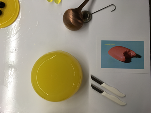 Een volgend belangrijk experiment dat ik in fase 2 uitvoerde was de Smaak Challenge van Férran Adrià. (Marres, Z.d. )Tijdens de ‘opvoering’ van dit experiment. Werd de aandacht van mijn zintuiglijke waarneming gestuurd, met de bijgeleverde instructie. De Challenge leverde niet alleen een zintuiglijke gewaarwording in het hier-en-nu op, maar zette mij aan tot het maken van een beeldende vertaling. Wat ik eerder met mijn tekeningen deed, kreeg na dit experiment veel meer mogelijkheden. Omdat het liet zien dat we onze belichaamde ervaring van smaak in kunnen zetten om een beeldend object te maken.