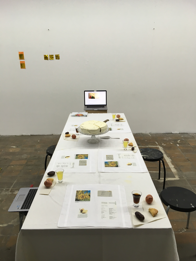 Binnen dit beeldend onderzoek stelde ik mijzelf als voorwaarde om te werken met eten. Allereerst omdat ik hiermee het fysieke lichaam aanspreek. Daarnaast omdat we smaak ervaren door de samenkomst van vijf gewaarwordingen, waarbij we al onze zintuigen tegelijk gebruiken.