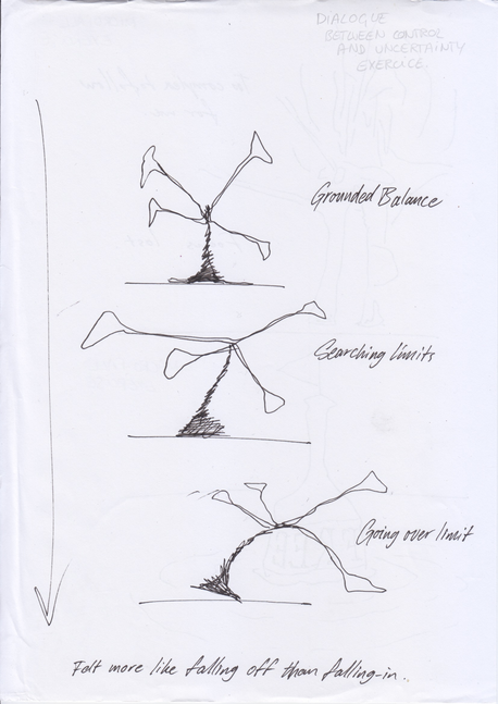 Metaphorical images are translated expressions of the movement practice "#falling in", which landed in the frame of a paper.