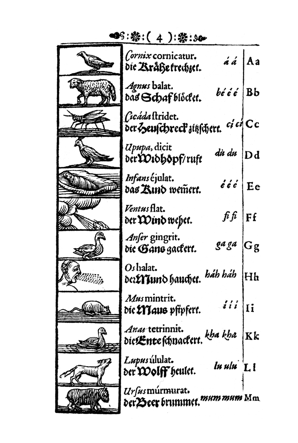 1. Johann Amos Comenius: Initial sound table out of Orbis sensualium pictus, public domain.