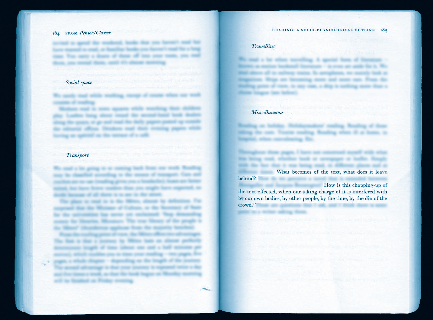 Reading on Reading is a series of experimental reading practices developed collaboratively by Emma Cocker, Cordula Daus and Lena Séraphin whilst working together in the Research Pavilion #3, Venice, 2019, for exploring what alternative modes of sense making are produced when reading is undertaken artistically, as an aesthetic activity. Reading on Reading explores three interrelated foci: How can aesthetic practices of reading: (1) Shed new light on the phenomenology (or how-ness) of reading? (2) Transform the often-solitary activity of reading into a shared or communal act — and explore what modes of sociality, solidarity and emergent ‘we’ emerge therein? (3) Operate as a disruptive process unsettling normative conventions of reading through focus on the poetic, affective and material dimensions of readerly experience? Within this artistic research collaboration, we consider the act of reading beyond the relation of the reader to a text read, as a micro-political or ethico-aesthetic practice through which to re-consider — perhaps even re-organise — the relations between self and other(s), self and world. Drawing upon Félix Guattari’s notion of ecosophy with its three ecological registers of environment, social relations and human subjectivity, in this exposition we consider how the modest practice of reading together could contribute to a wider ethico-aesthetic project: for cultivating shared poetics of attention, for the re-sensing of language through embodied vocalisation, for tending to the temporary gatherings of ‘we’ that reading together affords. The aim of this exposition is to share the reading practices tested and explored in and through the collaboration of three artist researchers, alongside reflection on the questions and concerns emerging within this enquiry. Whilst operating as a document or archive of a specifically time-bound research activity, the intention is that our reading practices have scope to be activated by other readers.