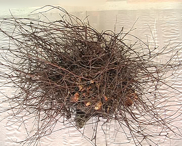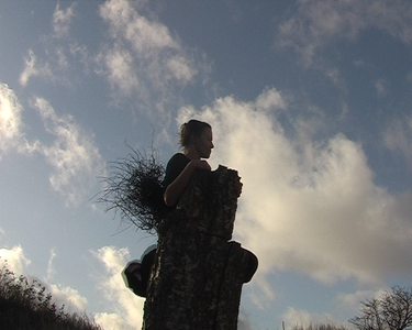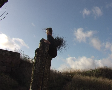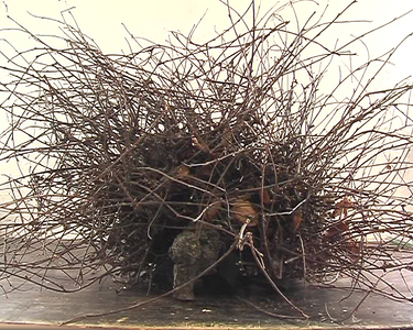 Wind Nest - Witches' Broom (video 19 min. 52 sec.), a performance for camera. Test, not utilized. / Wind Nest - Witches' Broom (video 19 min. 52 sek.), en performance för kamera. Test, icke använd.