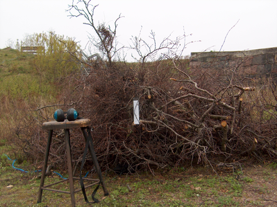 The witches' broom in its various versions at the exhibition Myrkkyä. Gift. [Poison] at Harakka Island 17.5.-19.9. 2006. / Markvasten i de olika versioner den figurerade i utställningen Myrkkyä. Gift. på Stora Räntan 17.5.-19.9. 2006.