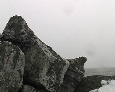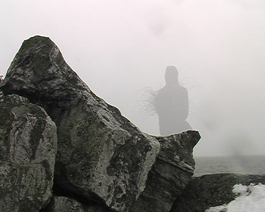 Winter Wind Nest 2 (video 19 min. 41 sec.), where the human figure slowly appears in the image./ Winter Wind Nest 2 (video 19 min. 41 sek.), där människofiguren långsamt framträder i bilden.