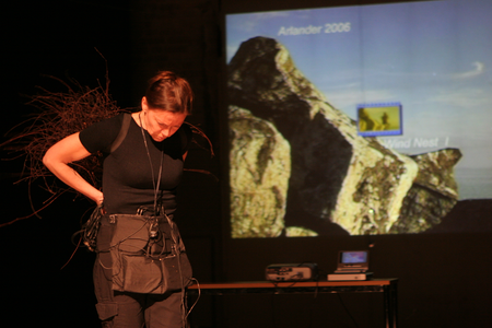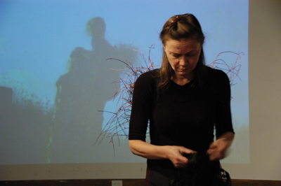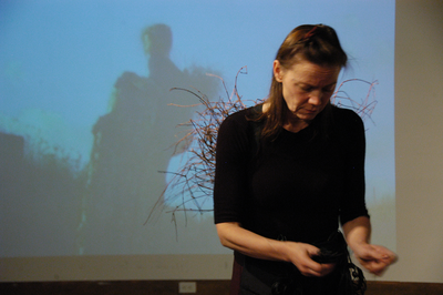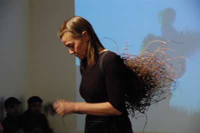 Image from the beginning of the performance Wind Nest – Witches’ Broom Variation, at the La-Bás –festival in Helsingki 5.5.2007. Photo Antti Ahonen./ Bild från inledningen av Wind Nest – Witches’ Broom Variation, performance på La-Bás –festivalen i Helsingfors 5.5.2007. Foto Antti Ahonen.