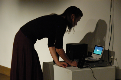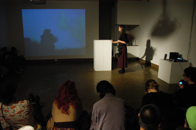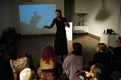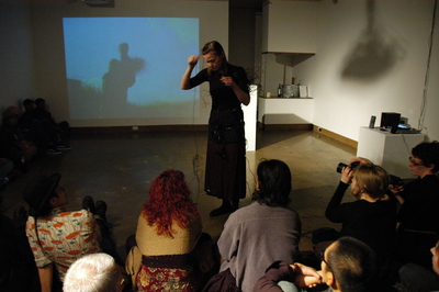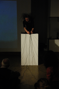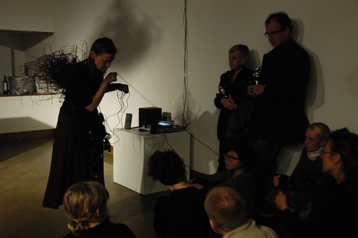 Wind Nest Variation, performance at 7 a*11d – performance art festival, Toronto, 1.11.2008. Photo: Henry Chan. / Wind Nest Variation, performance på 7 a*11d – performance konst festivalen, Toronto, 1.11.2008. Foto: Henry Chan.