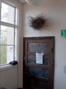 Winter Wind Nest, durational performance or performance installation at Esitystaidehalli –festival, Helsinki Kunsthalle 12.-13.4. 2008. Photo: Topi Äikäs. / Winter Wind Nest, durational performance eller performance installation på Esitystaidehalli –festivalen, Helsingfors konsthall 12.-13.4. 2008. Foto Topi Äikäs.