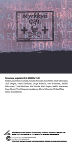 The text of the witches' broom recorded as a faint whisper (56 sec.), originally recorded as part of the work Witches' Broom (minature audio play in three parts) at the exhibition Myrkkyä. Gift [Poison] 17.5.-19.9. 2006, and later used in most versions of the performance. / Markvast-texten på finska inbandad som svag viskning (56 sek.), ursprungligen inbandad som en del av Witches' Broom (miniatyrhörspel i tre delar) på utställningen Myrkkyä. Gift. 17.5.-19.9. 2006, och sedermera använd i de flesta versioner av föreställningen.