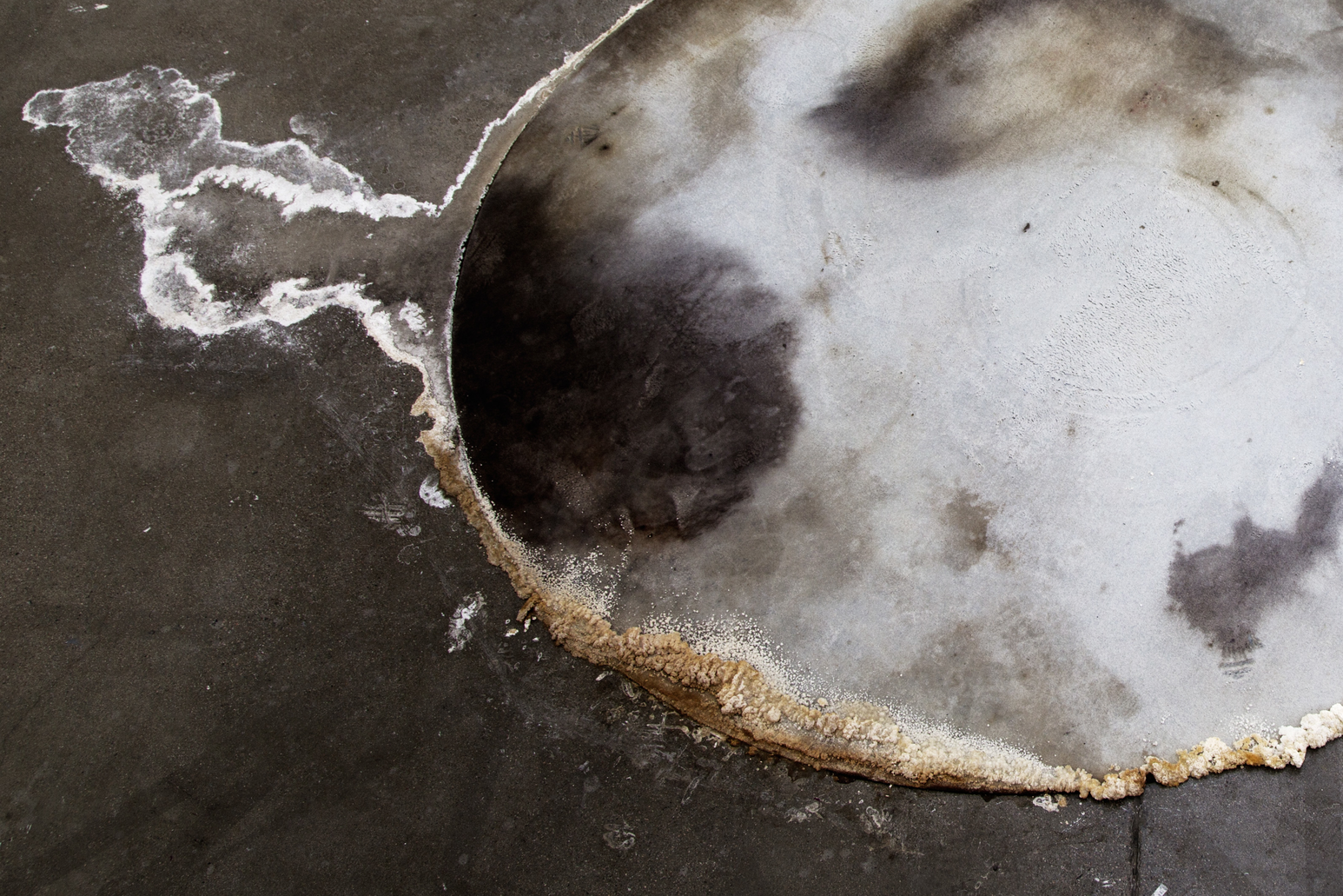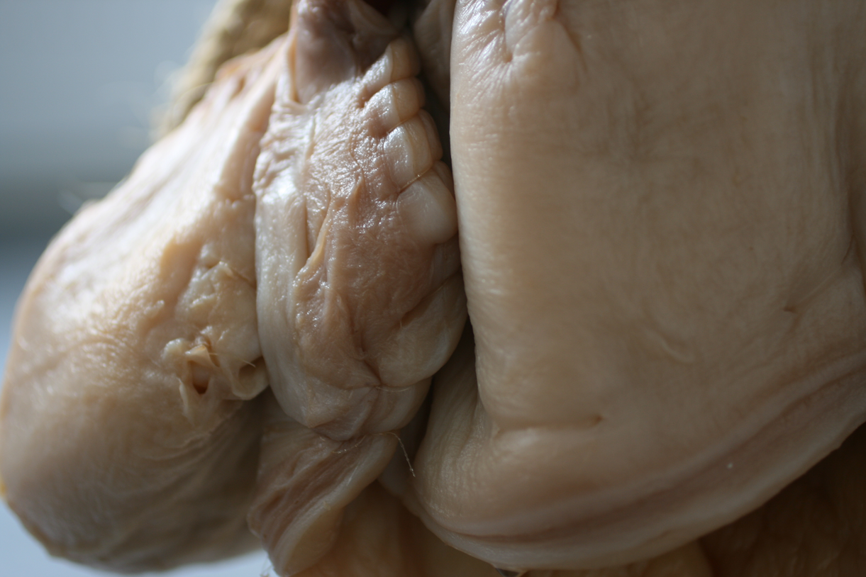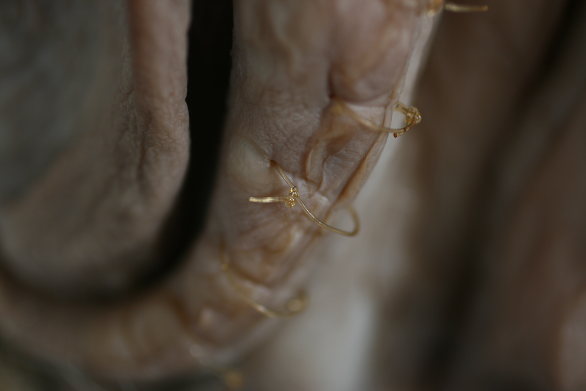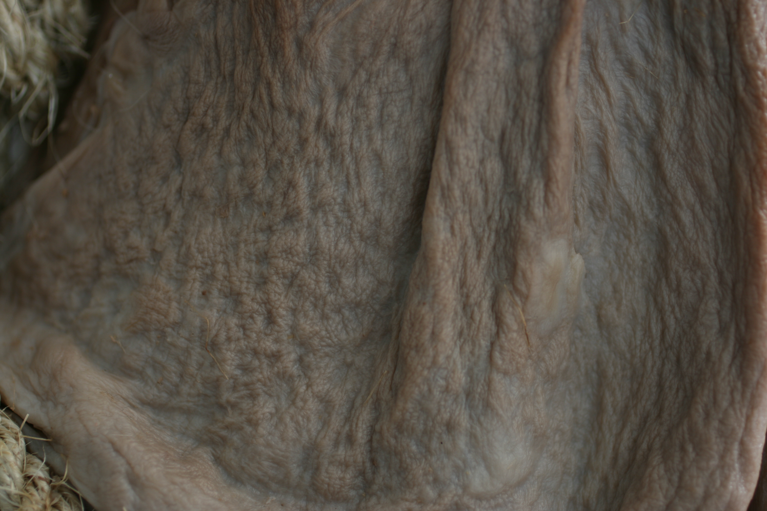 En veckan efter öppningen/vernissagen. Verket har börjat förändras och vattnet avdunstar från kroppen. Ytor går från att vara puffiga babykroppar till att likna gammal hud.
