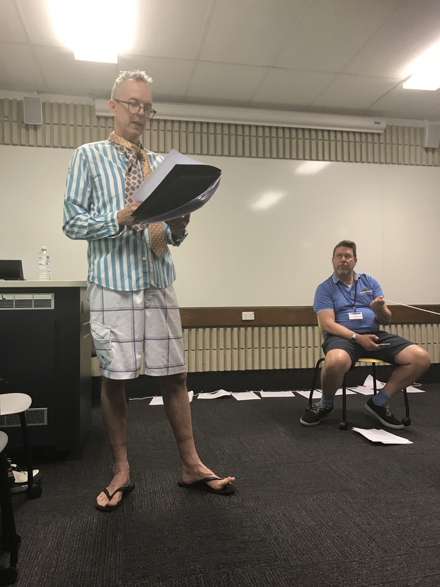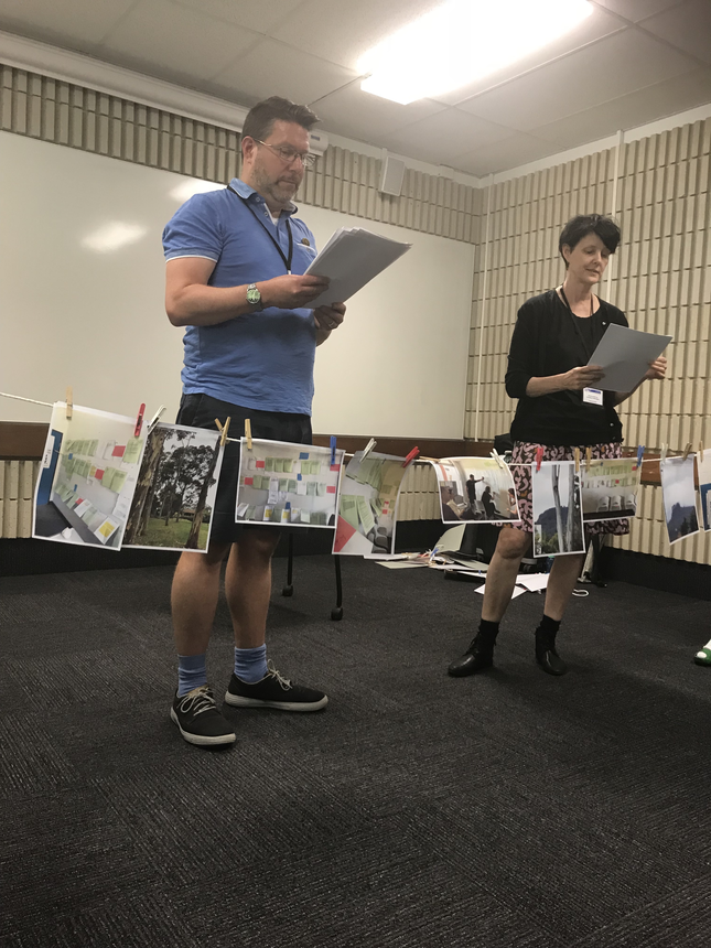 The conference performance took place in a scheduled panel slot December 2018, at Curtin University in Perth, in a small, plain classroom under fluorescent lights before an audience of writers and scholars. This, the 23rd Annual Conference of the Australasian Association of Writing Programs, was dedicated to exploring the notion of Peripheral Visions, and our contribution was sparked by a Call for Papers that began: “Every creative expression shares a vision. Whether writers are looking from, looking towards, looking askance, looking away, or looking over, writing beckons us to the periphery and asks, ‘Where to now?’”