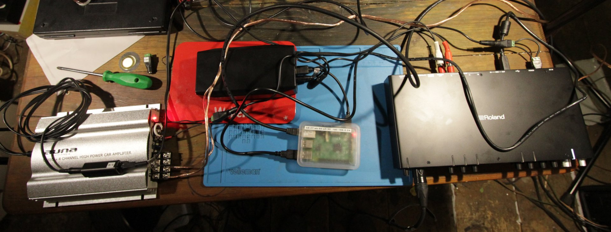 If we go for a 4x4 channel configuration, there are two possibilities: Make each 'antler' independent, i.e. one Pi Zero 2W with cheap USB interface, ETM-001, one channel amp. Or make it centralised, one Pi Zero 2W or 3B with Roland Rubix44, 4x ETM-001 with P48 adapters or 4x OM1, one Auna C300.4. While the asynchronous version is attractive, it may also be the technically more demanding; unclear if the mic-pre of the 1x2 USB devices are good enough, then eight devices on the Wifi etc. Another question is whether to stick with piezos or use the Dynavox PS-138 instead. They might be too heavy (times eight or times sixteen).
