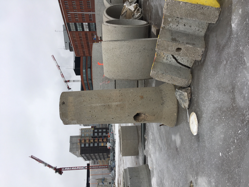 I looked for materials: cement rings and insulation tapes. An abandoned plastic shopping bag frozen, frozen foods. A trash picker attached to the frozen ground, near the shopping bag. I hold on of to the picker and I am trying to fight against the ice. The mind is restless. There is a soundscape but it does not bother me.