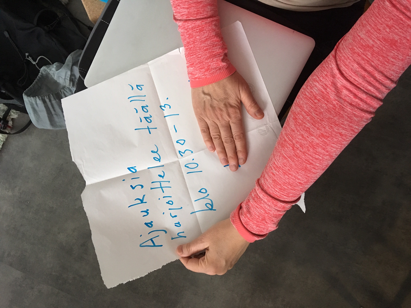 Ajauksia-ryhmä keskustelee. Ajauksia group discusses: