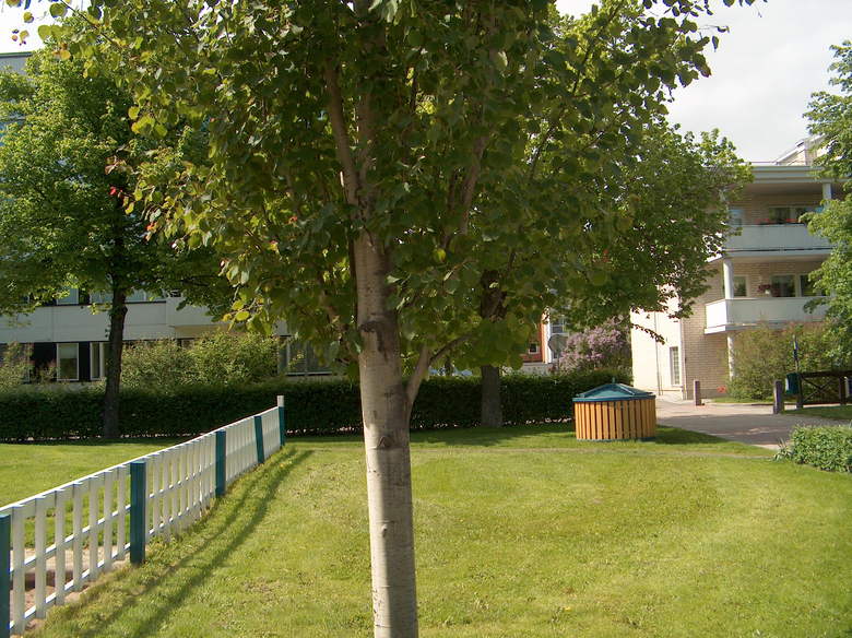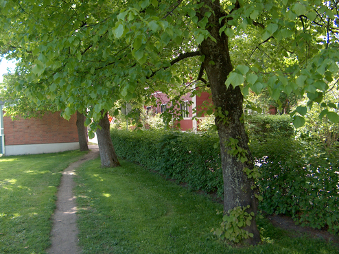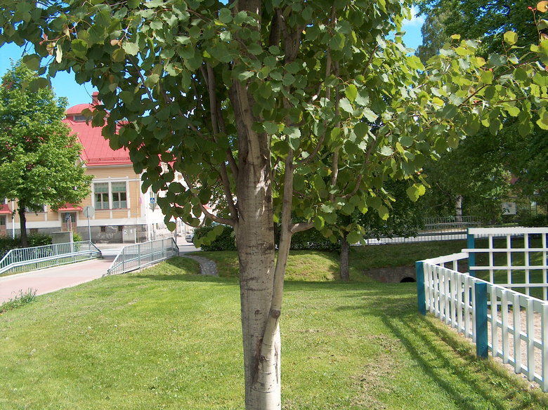 My name is Tilia, though around here they call me lehmus, linden or lime tree. Actually my name is Tilia vulgaris, the common one. I belong to the noble deciduous trees and I like good soil and a nice climate, but I am quick to grow and beautiful, and my wood is strong and dogged. I can become 15-30 meters tall and live up to 800 years. When young my stem was smooth, though it gets rougher as I grow older. My leaves are round, shaped like a heart. My greenish flowers are full of nectar with a lovely smell. Honey of linden is exceptionally good. /--/