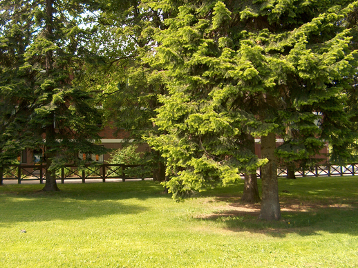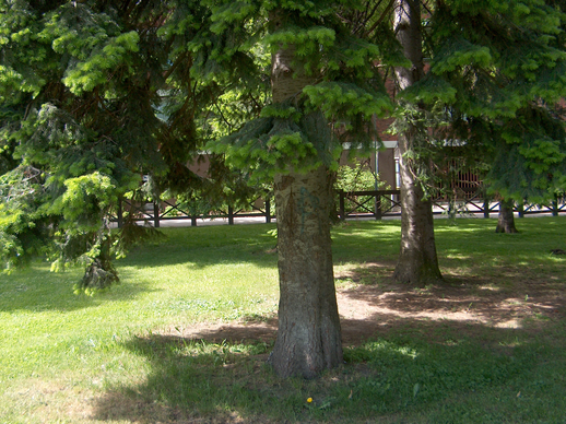 My name is Picea, though around here they call me fir. Actually my name is Picea mariana, which means that I come from Maryland in the United States. So I am no ordinary fir tree but a black fir. Originally our homeland extended from Alaska to Newfoundland, and southwards into the States only by the Great Lakes. Though my family is native elsewhere, I like it in Finland, and in Lapland, too. I belong to the coniferous trees and we are a large and varied family. Of all my relatives I prefer the silver firs; I feel we resemble each other like soul mates. They live here mostly as ornamental trees and can be tall, 40-50 meters, though they rarely live very long. Most of them start to fade at the age of one hundred. The silver firs and their kind, with the family name Abies, you can distinguish from us by their soft, round-tipped needles and their upright standing cones. My cones, like those of other firs here, are hanging, have thin scales and drop off whole. /--/