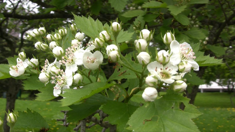 My name is Crataegus, though here they sometimes call me hawthorn. We are relatives of the roses and my name refers to my thorns, I guess. There are more than two hundred species of us in the temperate zone of the northern hemisphere. In Finland we are around twenty, most of us coming from North America originally. We are all blooming at different times.