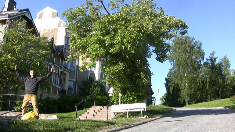 Jag har planterats här enkom, och trivs nog bra, fastän det har blivit lite trångt för mina rötter på äldre där. Solen skiner behagligt här och trafiken är inget större problem. Jag trivs med att sträcka på grenarna fritt åt alla håll. Det kan se ut som om vi var två som växer här intill varandra, men det är nog bara jag som förgrenat mig.