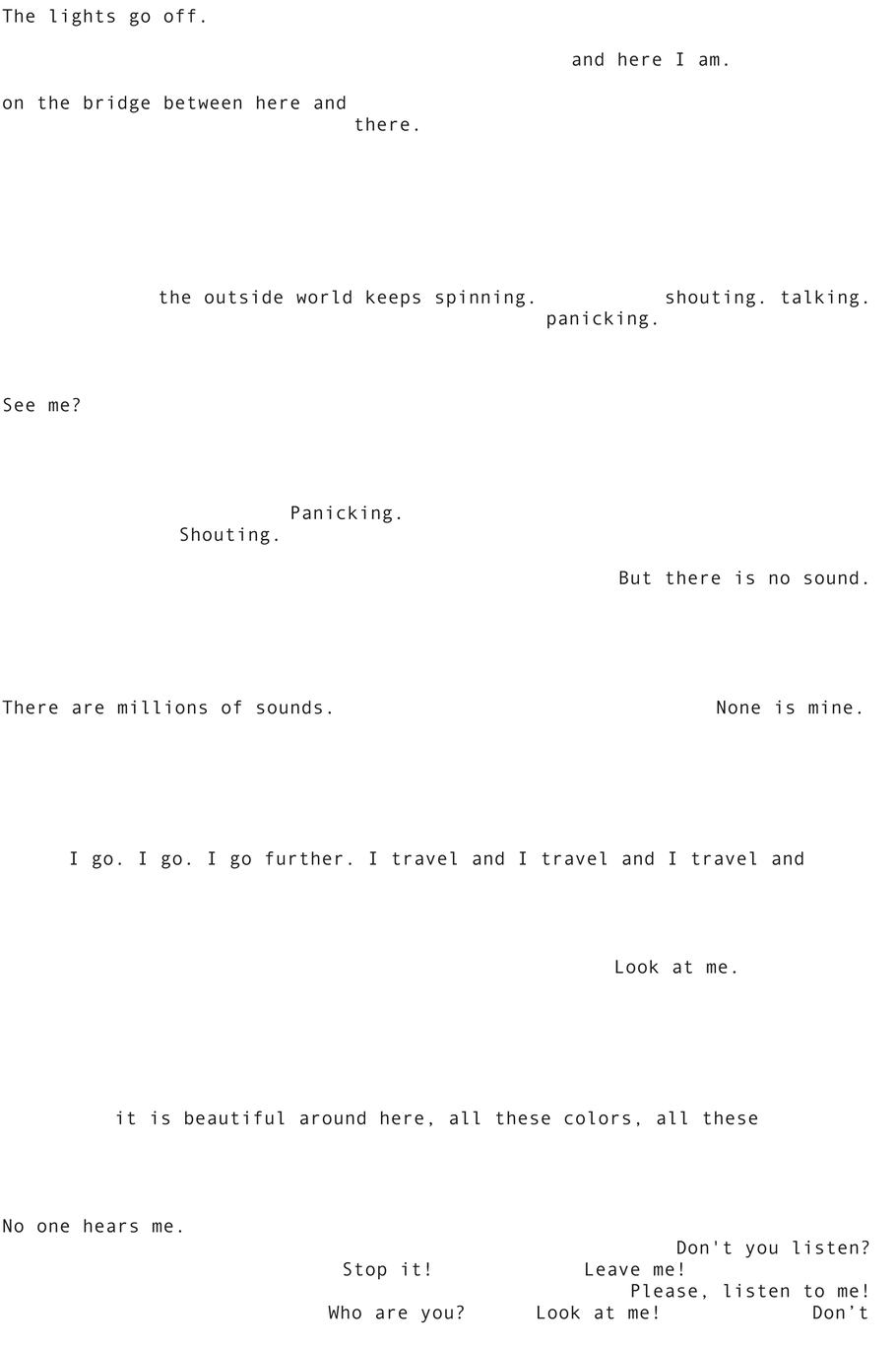 As an audience member, I hope to be able to explain why certain works labeled as Music Theater do not feel like Music Theater to me, and why other performances then again not labeled as Music Theater I do experience as Music Theater.