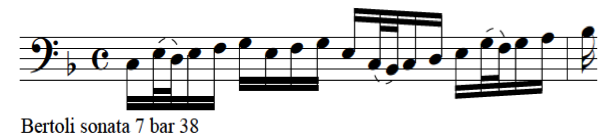 Fig.27 a,b and c Bar 38-41 from Sonata Prima by G.A.Bertoli: