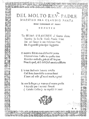 Fig.19 Sonnet by Claudio Panta to De Selma’s Canzoni fantasie et correnti da suonar (Venice 1638)