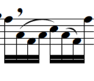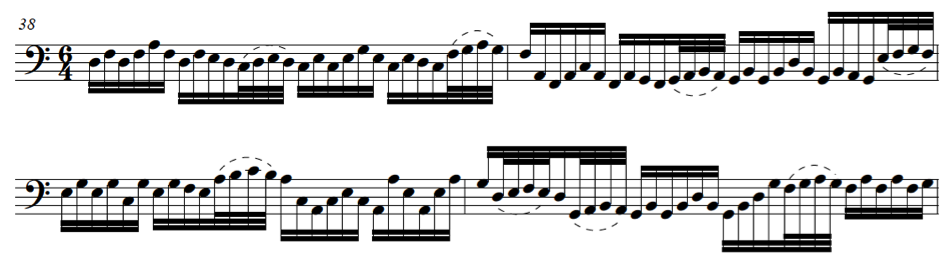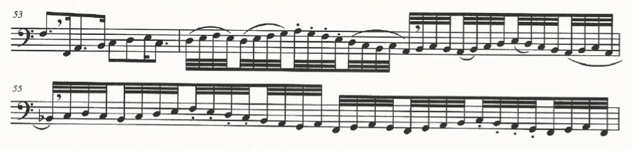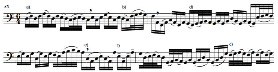 Fig.26 De Selma, Fantasia per basso solo. Bar 100-104 Canzoni Fantasie et Correnti, Venetia, 1638