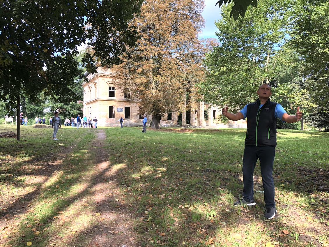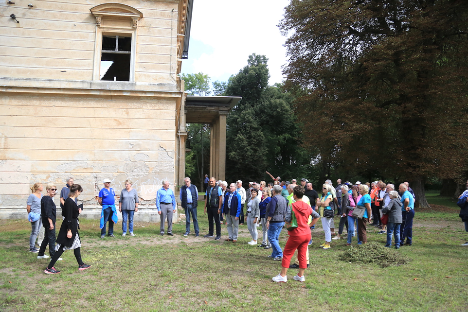 When the last word rolled down the hill, clicking sounds could be heard from one side of the former mansion. Singers had assembled in small groups and were whispering "Blätter", separated into parts: Blätt-ätt-ter.