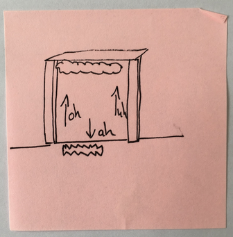 Workshop sketch showing spatial distribution of the three groups. Later, each group received a paper on which the parts that they would sing were underlined.