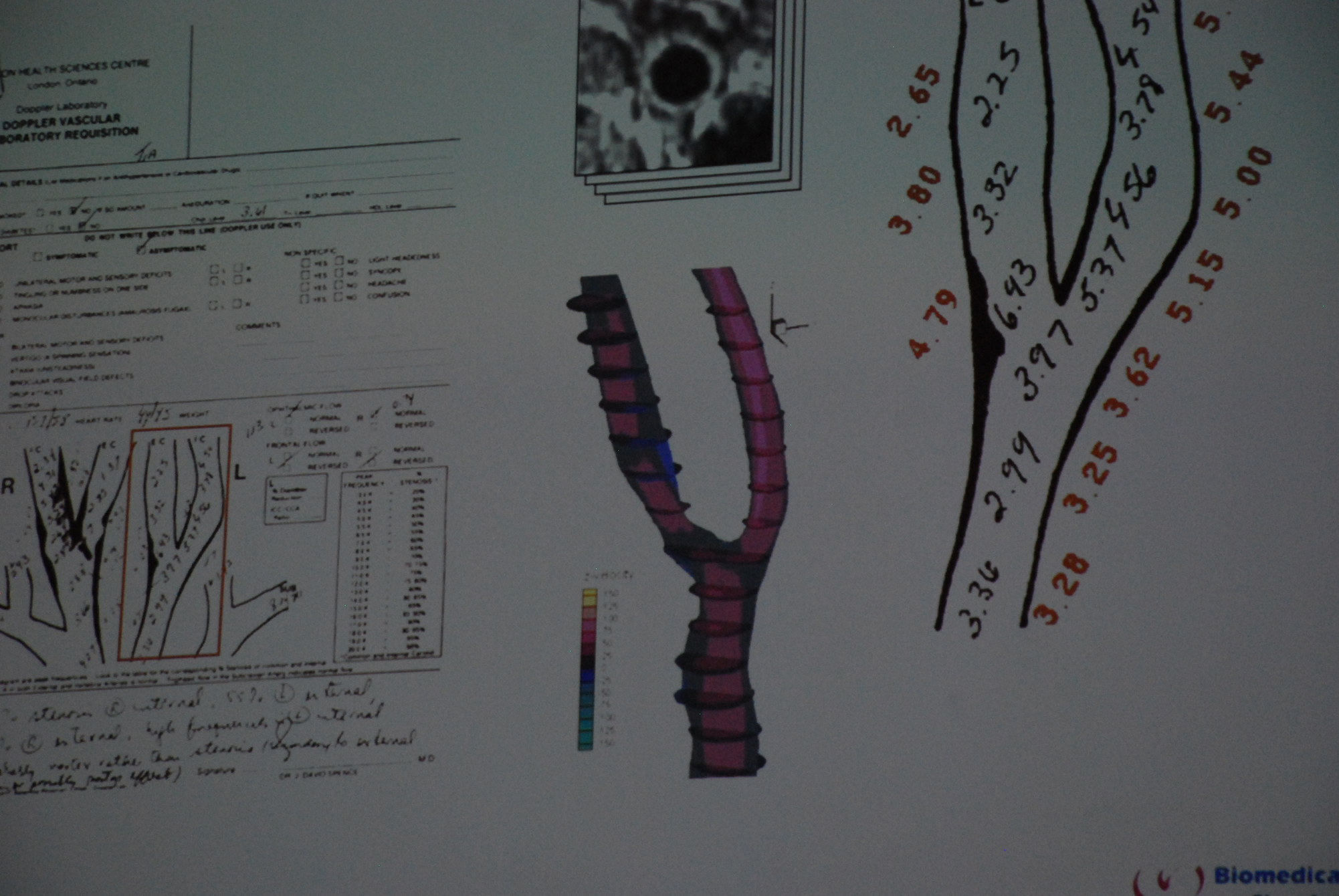 Departing from our early engineering-style visualizations, by engaging with visual and sound artists, designers and cognitive scientists, we developed our current carousel-style prototype that brings together video and audio simulations of patient data. The prototype is a novel bi-modal way of presenting bio-data based on Marey’s zoetrope principle. In addition to the idea of a succession of frames that engage the viewer’s (educated) imagination in filling the gaps between, the individual frames are caricature-like visualizations (i.e. emphasizing particular characteristics relevant to understanding the phenomenon) accompanied by most suggestive soundscapes, with the ultimate aim at quickly drawing the attention of the treating clinician to the fast changes in the flow pattern, changes that have been shown to bring potential fatal consequences to the patient.