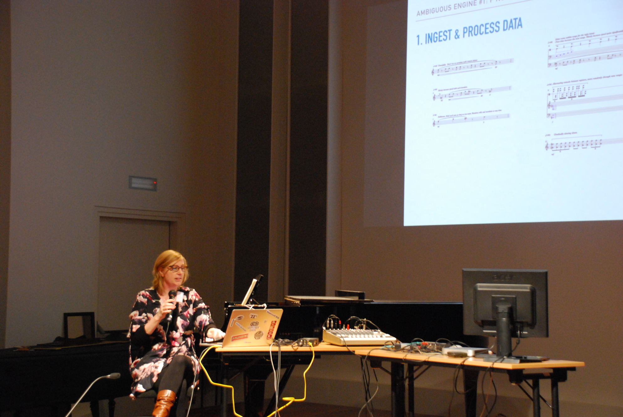 Isomorphism occurs when components are tightly coupled (Hawley, 1986). Isomorphism is illustrated in electronic music when a gesture is translated via a machine from one form to another and its source is readily perceived. Yet, we live in a post-digital world where there is no obligation to reproduce reality: thus, we may— and should!—uncouple components and transform reality at the whim of our curiosity. Uncoupling suggests autonomous machine interaction, however it is critical that we maintain performance cohesion. When presence is mediated by technology this means we must reproduce, generate, share the information that we need for participation: timing so that we can perform together, and musical features such as timbre and dynamics so we can experience a shared relationship. Regenerating information means accepting substitutions— substitutions derived from computational decisions made by the machine designers. While mediated presence can cause the loss of certain parts of natural presence, machines can surpass the limits of time and place, adding “elements to natural presence which natural presence otherwise would not have possessed.” (Nevejan, 2007).