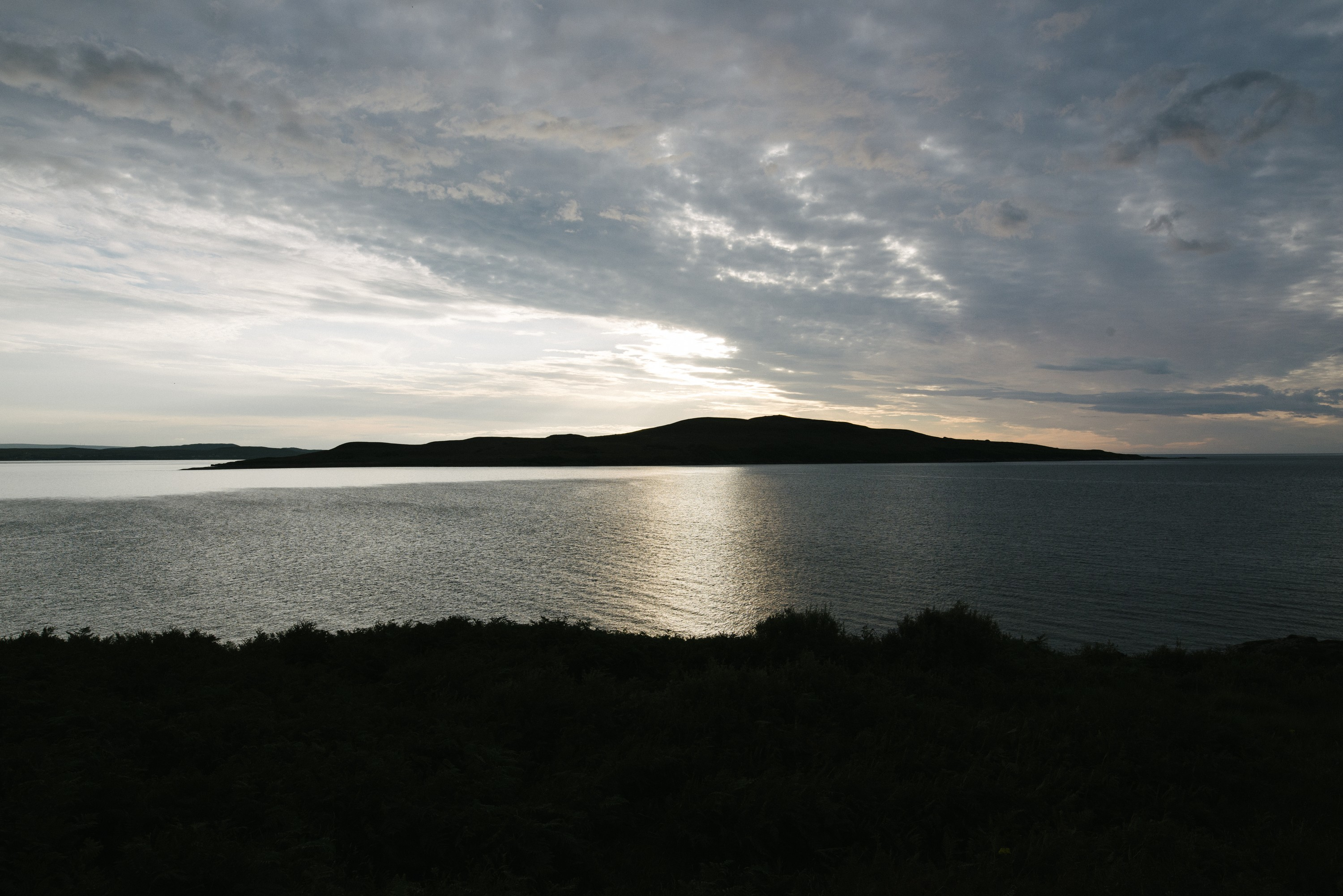 Mungasdale, the Highlands, Scotland, July 27, 2018. When I first looked at the island in the bay in front of me – or instead, when it entered my field of vision – I only perceived a dark abstract volume, sharply defined against the light of the setting sun. My journey across the Scottish Highlands was marked with anxiety and awe in equal measure, for I was approaching a performative investigation in which I could die and yet, possibly, would have the opportunity to discover an alternative, entirely new form of planetary liveliness. At first sight of this dark landmass, my anxiety and desire were equally bundled in this object. Nothing was easier than to agree with Timothy Morton (2013) and to look at a transcendental hyperobject, similar to “special beings, like an angel or a demon or a god, sent to slap my objectification of reality upside the head by hurtling me into contact with a transcendental beyond” (136). Yet despite this situated demony, I perceived an immediate attraction to this place, bundled with the desire to embrace it, to comprehend it, and to absorb it into myself. My first encounter with this place was a distant view – a final restraint from my physical embedding in this traumatizing and traumatized architecture, scheduled for the following day. And yet, I became aware that the first moments of this planned encounter-event had already begun at the very moment when I took my first breaths in the presence of this ambiguous place. In my shelter on the mainland, I became one with Béla Tarr’s protagonists, who began “lying down, and pulling the blankets over them” (Tarr 2012). During my restless sleep, I was embedded in the “dead silence” raging in front of the house, breathing the air that passed from the place called Gruinard Island to me at every moment.