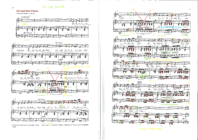 The Schubert Lounge project started almost unconsciously, as I sat at the piano and played through some of the simpler accompaniments to songs from Winterreise. And I was astonished how close it felt to the pop music that I grew up with. Schubert actually was a singer/songwriter himself, singing his songs to a circle of friends, to his own accompaniment. So I sat down with Schubert songs, sang them with my untrained voice, sometimes roughly from the score, sometimes more or less from memory after listening a couple of times to a song I wasn’t familiar with, not quite learning it, but still trying to conjure up some rendering of the song. Being neither a pianist nor a singer, I was nevertheless looking for a way of articulating these songs that somehow resonates with musical practices of our time. And I don’t mean practices of “new” or “experimental” music here, but practices emerging from and embedded in popular culture. The singing of songs.